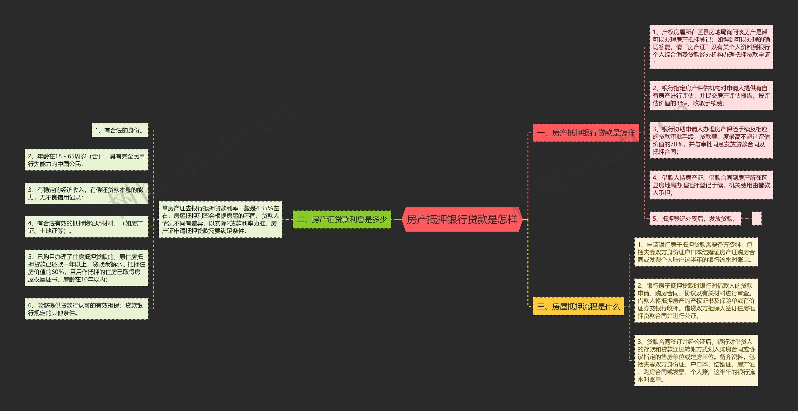 树图思维导图提供《房产抵押银行贷款是怎样》在线思维导图免费制作,点击“编辑”按钮,可对《房产抵押银行贷款是怎样》进行在线思维导图编辑,本思维导图属于思维导图模板主题,文件编号是:8e058479b835b213be0d53d78c65fbeb