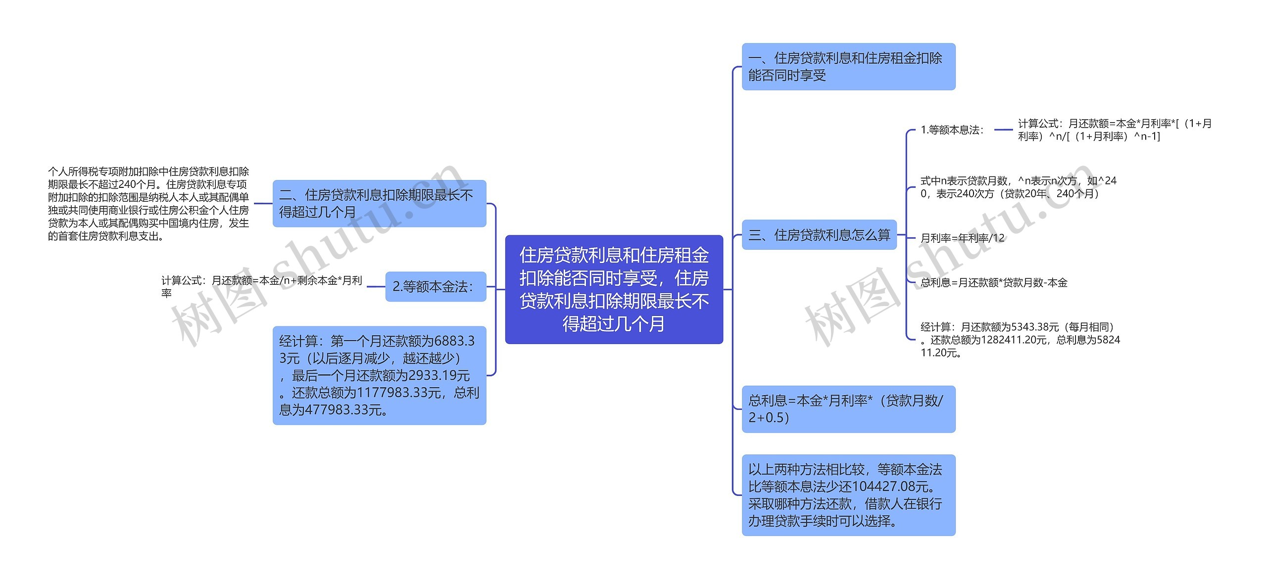 树图思维导图提供《住房贷款利息和住房租金扣除能否同时享受,住房贷款利息扣除期限最长不得超过几个月》在线思维导图免费制作,点击“编辑”按钮,可对《住房贷款利息和住房租金扣除能否同时享受,住房贷款利息扣除期限最长不得超过几个月》进行在线思维导图编辑,本思维导图属于思维导图模板主题,文件编号是:c93759b2e392e77cb06b7ebf9ef2267d