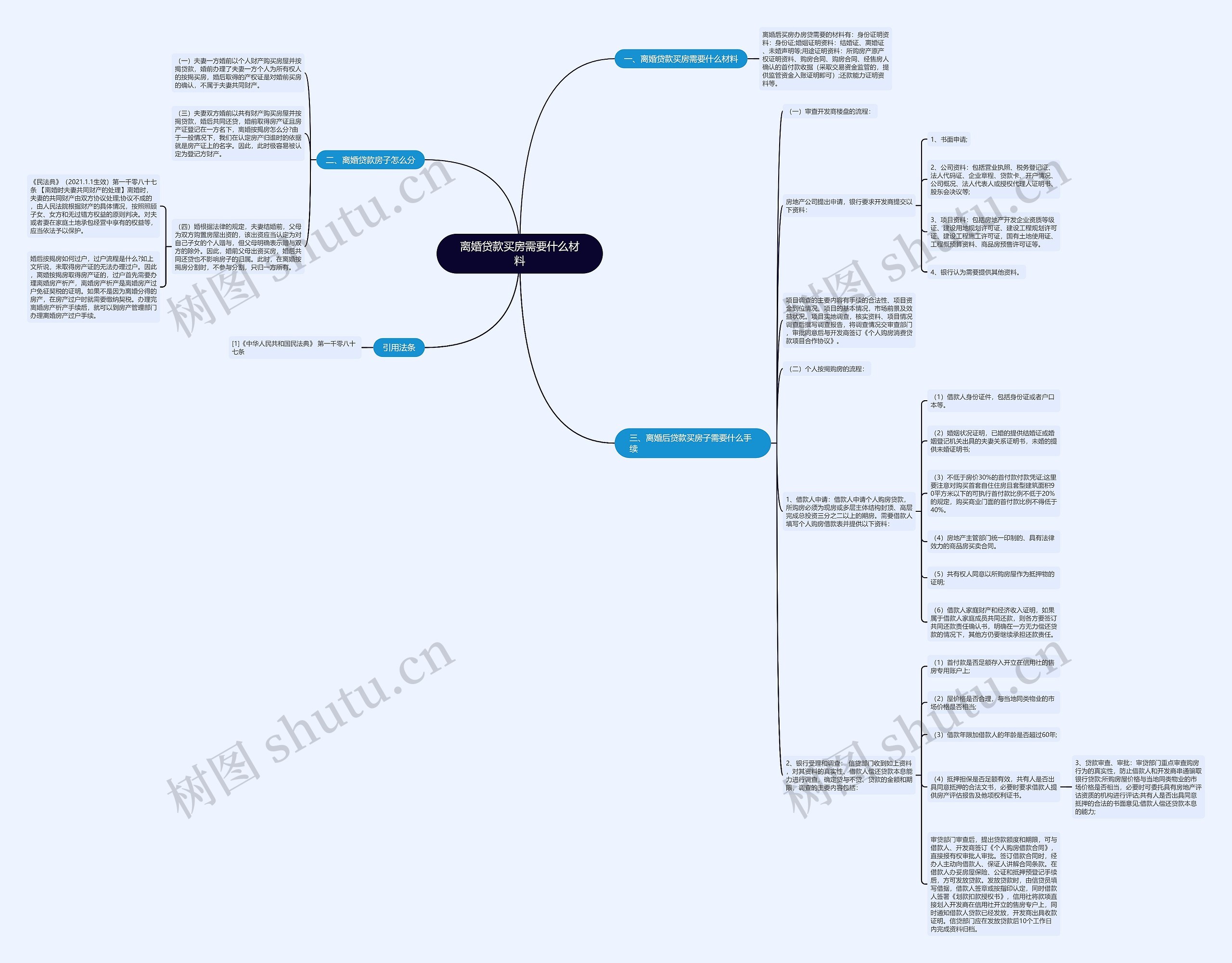树图思维导图提供《离婚贷款买房需要什么材料》在线思维导图免费制作,点击“编辑”按钮,可对《离婚贷款买房需要什么材料》进行在线思维导图编辑,本思维导图属于思维导图模板主题,文件编号是:885b965b48bffccce2e50a71615f9992