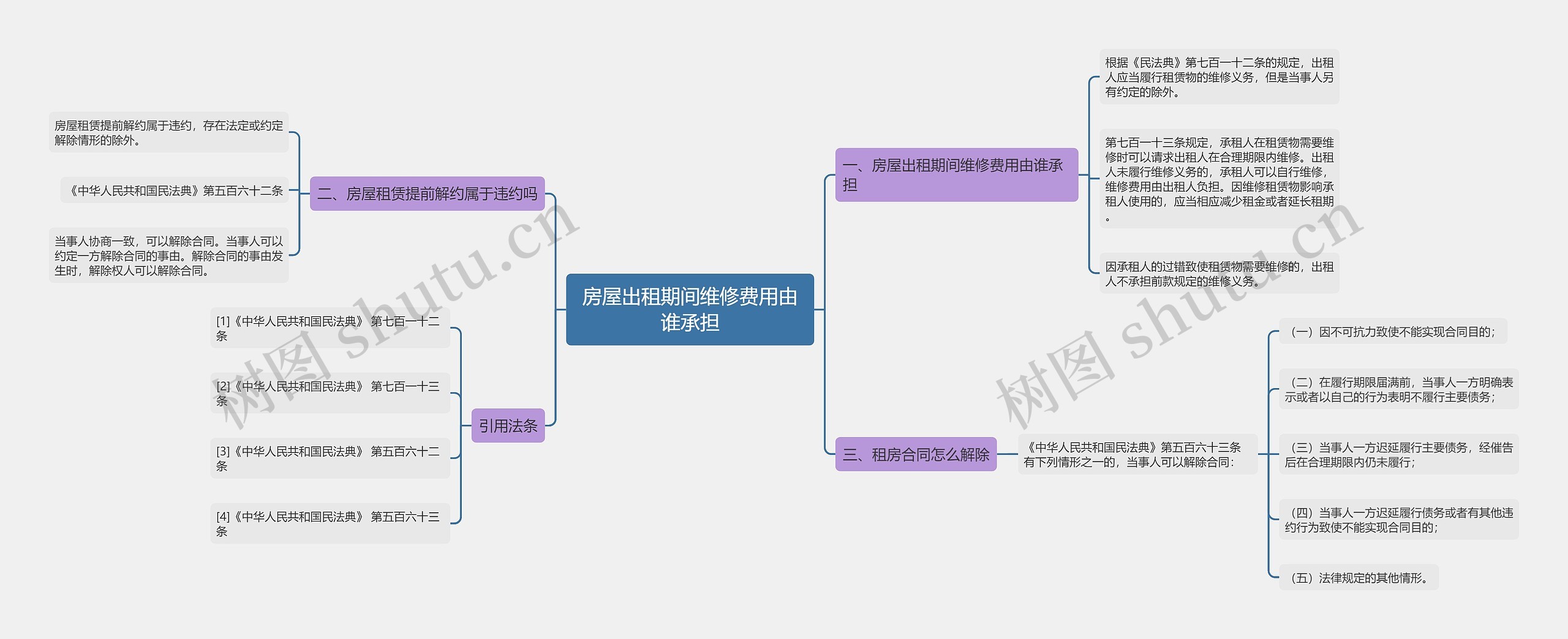 树图思维导图提供《房屋出租期间维修费用由谁承担》在线思维导图免费制作,点击“编辑”按钮,可对《房屋出租期间维修费用由谁承担》进行在线思维导图编辑,本思维导图属于思维导图模板主题,文件编号是:226abaf9171c7649fafede88769fd982
