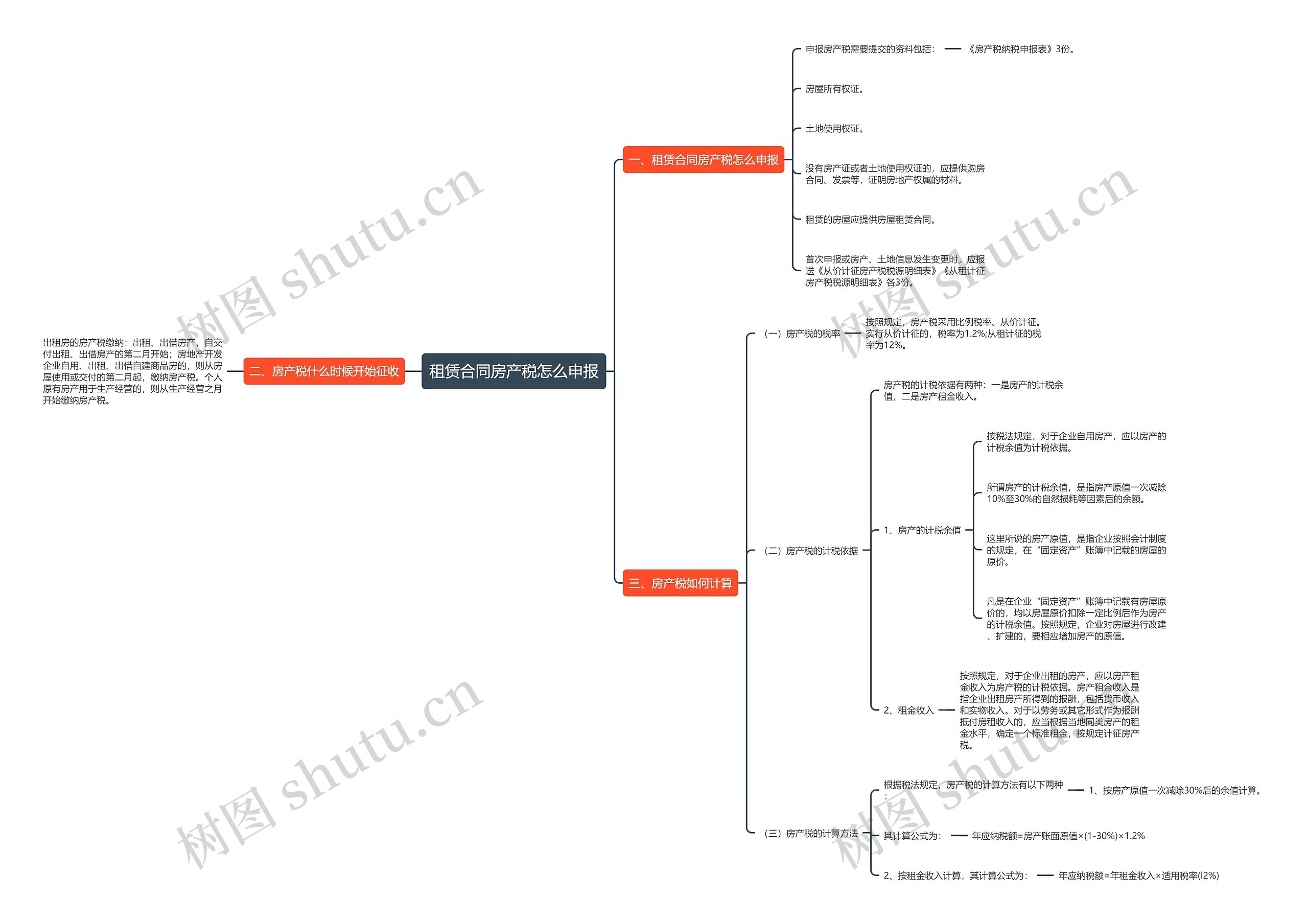树图思维导图提供《租赁合同房产税怎么申报》在线思维导图免费制作,点击“编辑”按钮,可对《租赁合同房产税怎么申报》进行在线思维导图编辑,本思维导图属于思维导图模板主题,文件编号是:f704767771d1dd8cd20db5f020b105cf