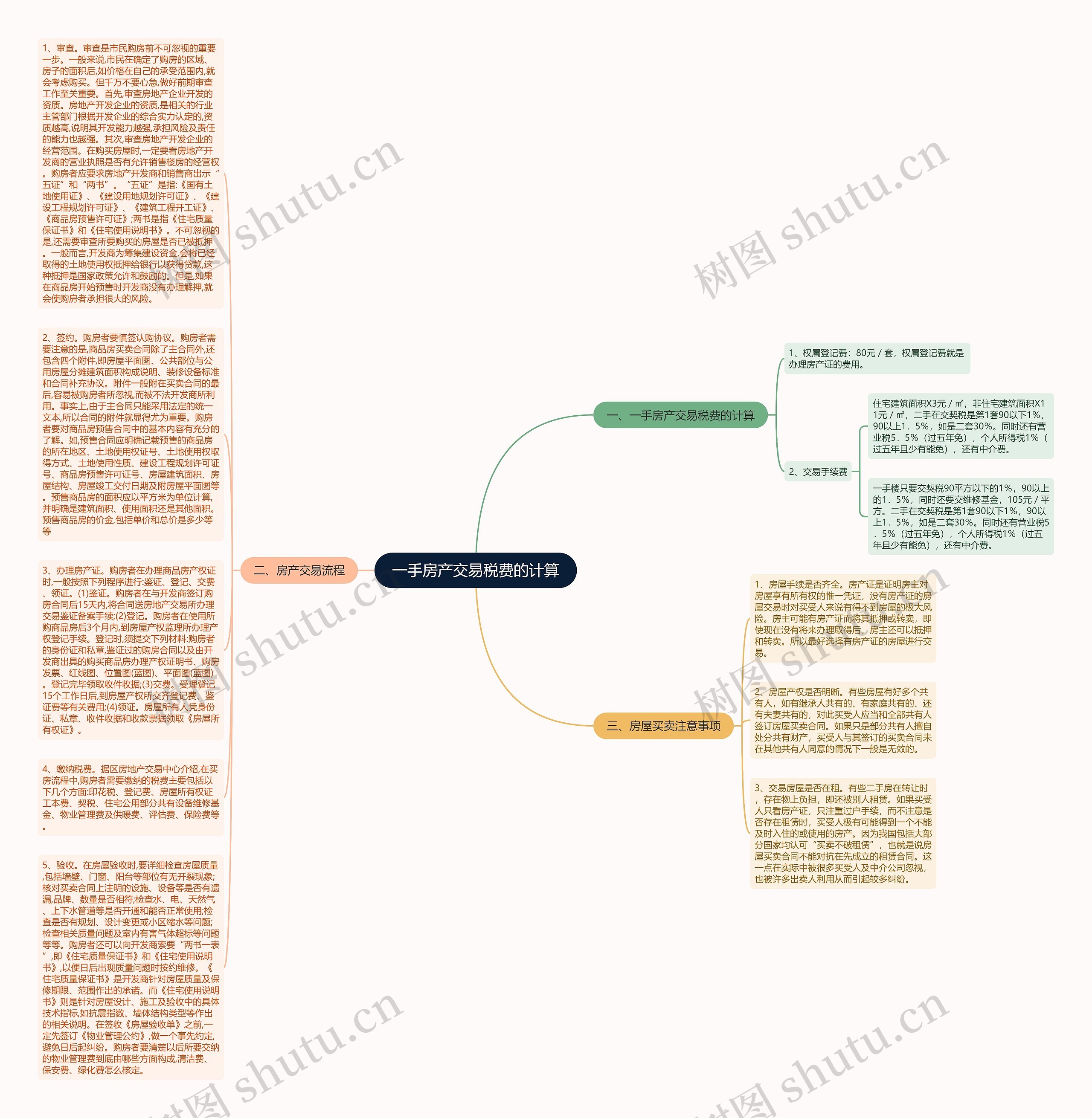 5、验收。在房屋验收时,要详细检查房屋质量,包括墙壁、门窗、阳台等部位有无开裂现象;核对买卖合同上注明的设施、设备等是否有遗漏,品牌、数量是否相符;检查水、电、天然气、上下水管道等是否开通和能否正常使用;检查是否有规划、设计变更或小区缩水等问题;检查相关质量问题及室内有害气体超标等问题等等。购房者还可以向开发商索要“两书一表”,即《住宅质量保证书》和《住宅使用说明书》,以便日后出现质量问题时按约维修。《住宅质量保证书》是开发商针对房屋质量及保修期限、范围作出的承诺。而《住宅使用说明书》则是针对房屋设计、施工及验收中的具体技术指标,如抗震指数、墙体结构类型等作出的相关说明。在签收《房屋验收单》之前,一定先签订《物业管理公约》,做一个事先约定,避免日后起纠纷。购房者要清楚以后所要交纳的物业管理费到底由哪些方面构成,清洁费、保安费、绿化费怎么核定。