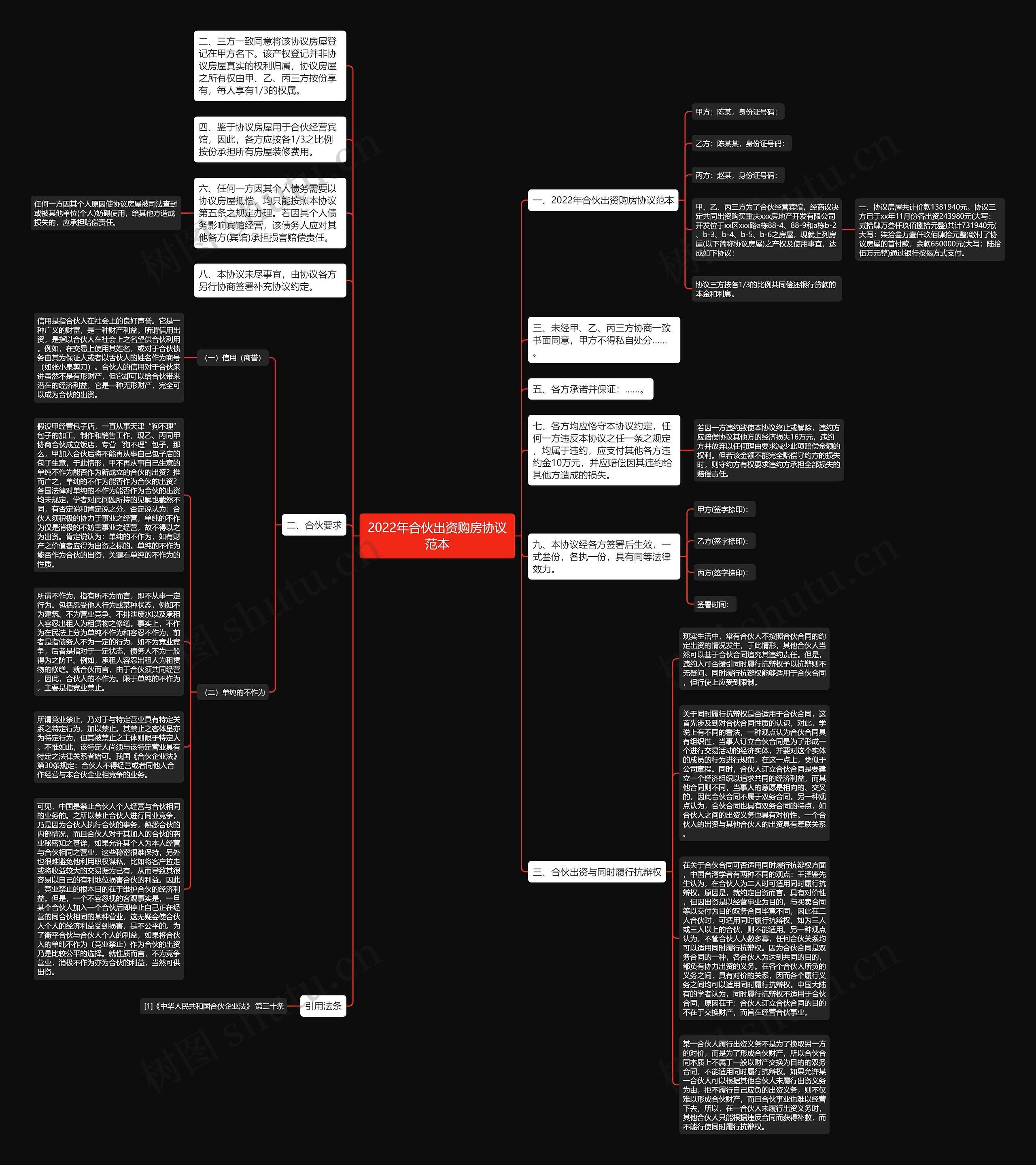 甲、乙、丙三方为了合伙经营宾馆,经商议决定共同出资购买重庆xxx房地产开发有限公司开发位于xx区xxx路a栋88-4、88-9和a栋b-2、b-3、b-4、b-5、b-6之房屋,现就上列房屋(以下简称协议房屋)之产权及使用事宜,达成如下协议: