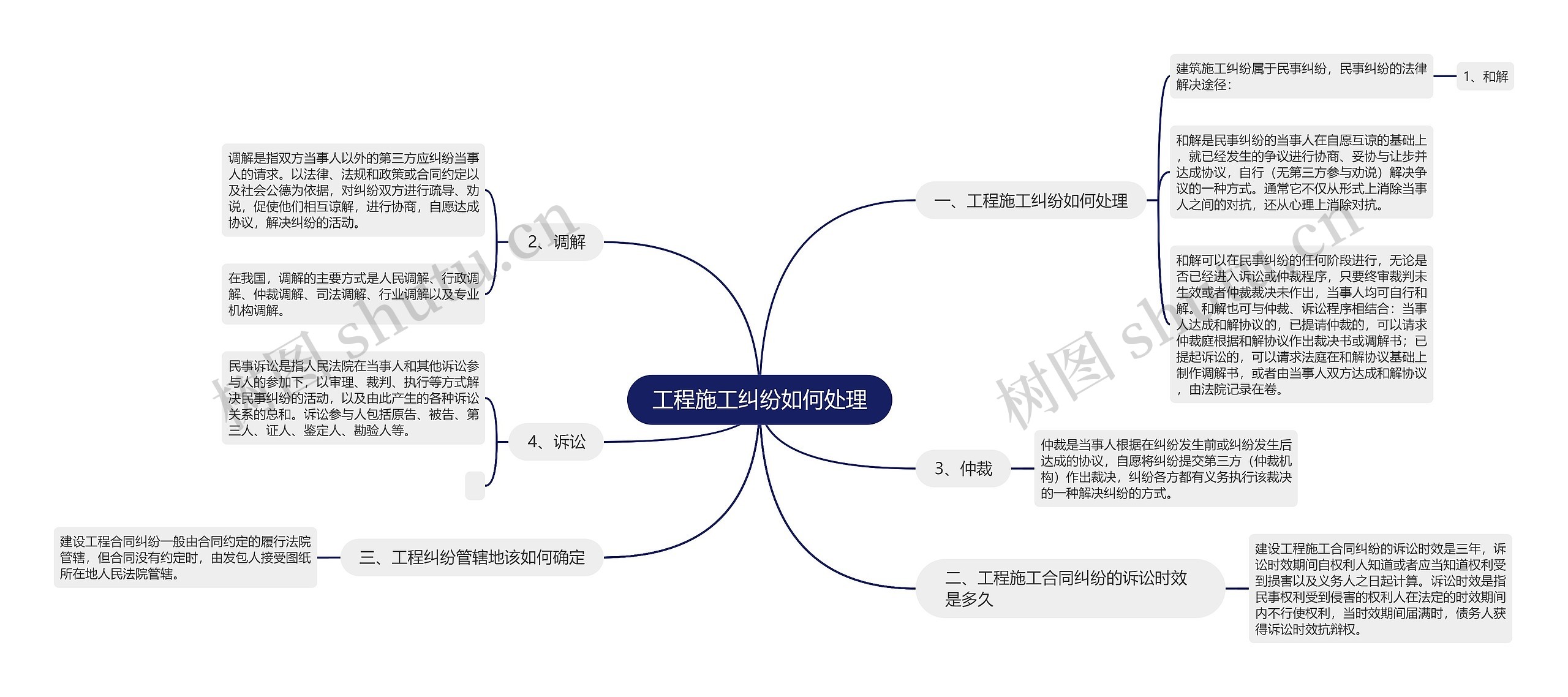 树图思维导图提供《工程施工纠纷如何处理》在线思维导图免费制作,点击“编辑”按钮,可对《工程施工纠纷如何处理》进行在线思维导图编辑,本思维导图属于思维导图模板主题,文件编号是:371e9ad4939021c6f101d118858511e0