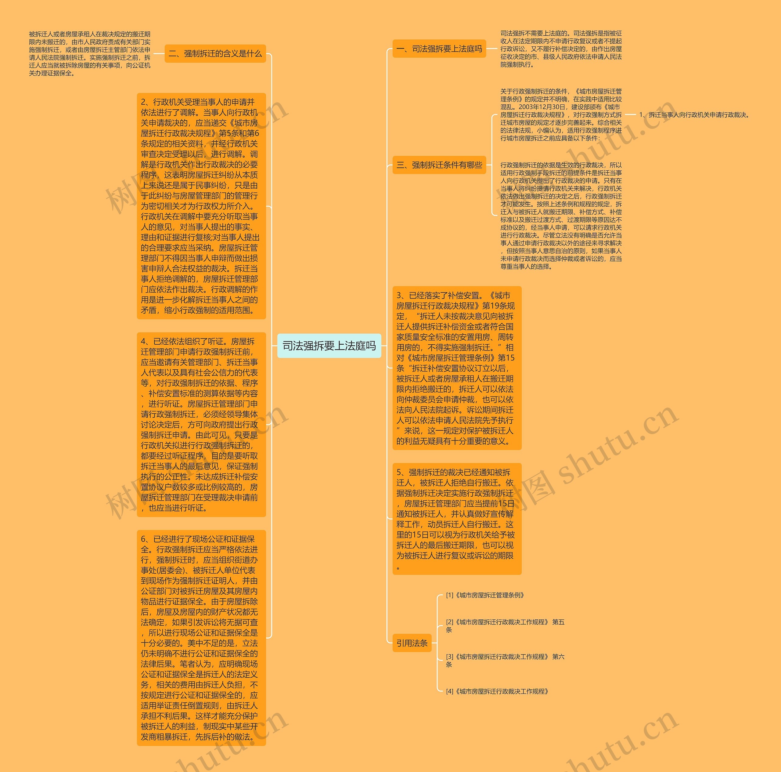 司法强拆不需要上法庭的。司法强拆是指被征收人在法定期限内不申请行政复议或者不提起行政诉讼,又不履行补偿决定的,由作出房屋征收决定的市、县级人民政府依法申请人民法院强制执行。