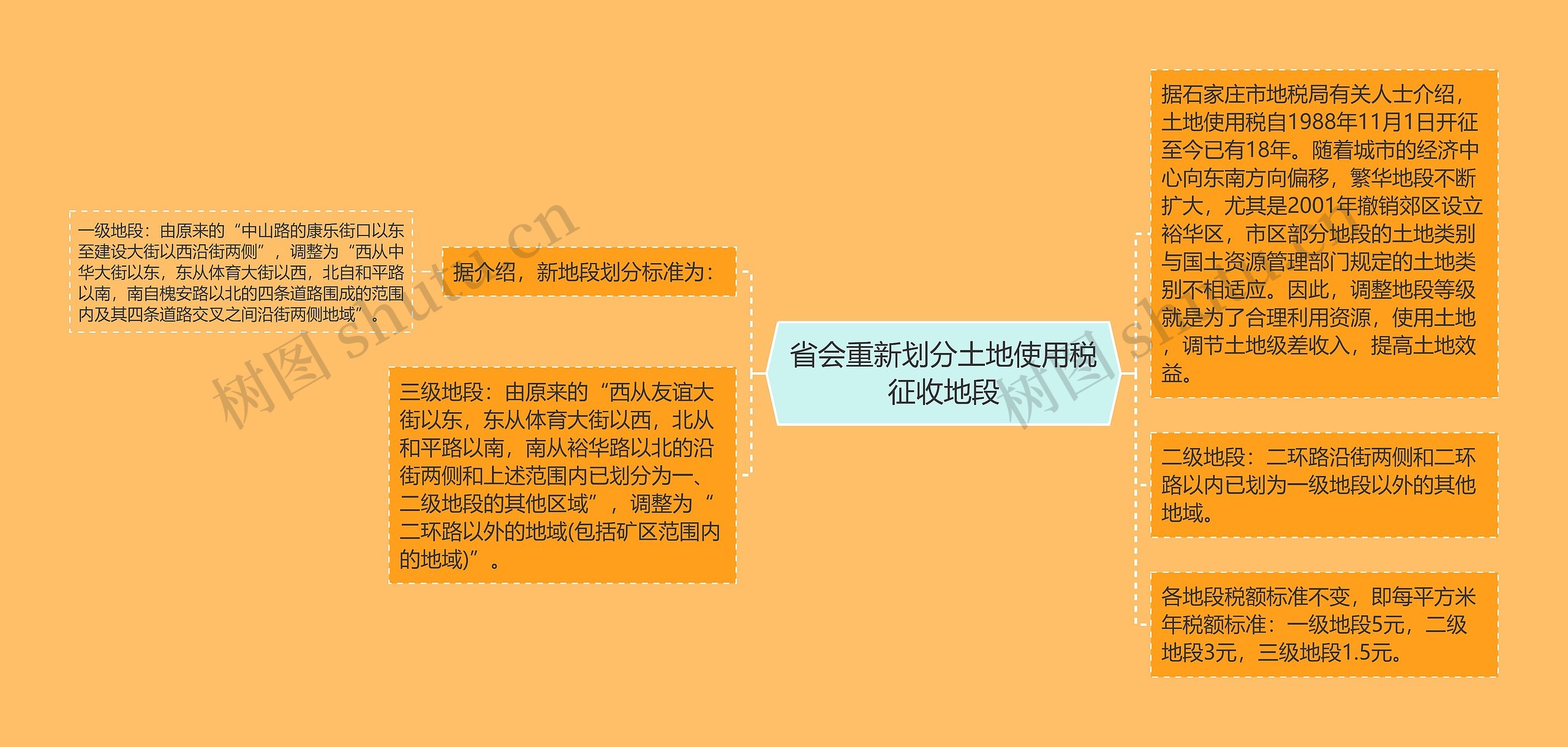 树图思维导图提供《省会重新划分土地使用税征收地段》在线思维导图免费制作,点击“编辑”按钮,可对《省会重新划分土地使用税征收地段》进行在线思维导图编辑,本思维导图属于思维导图模板主题,文件编号是:a2a92cb36eb0aa67e7941860693a9f37