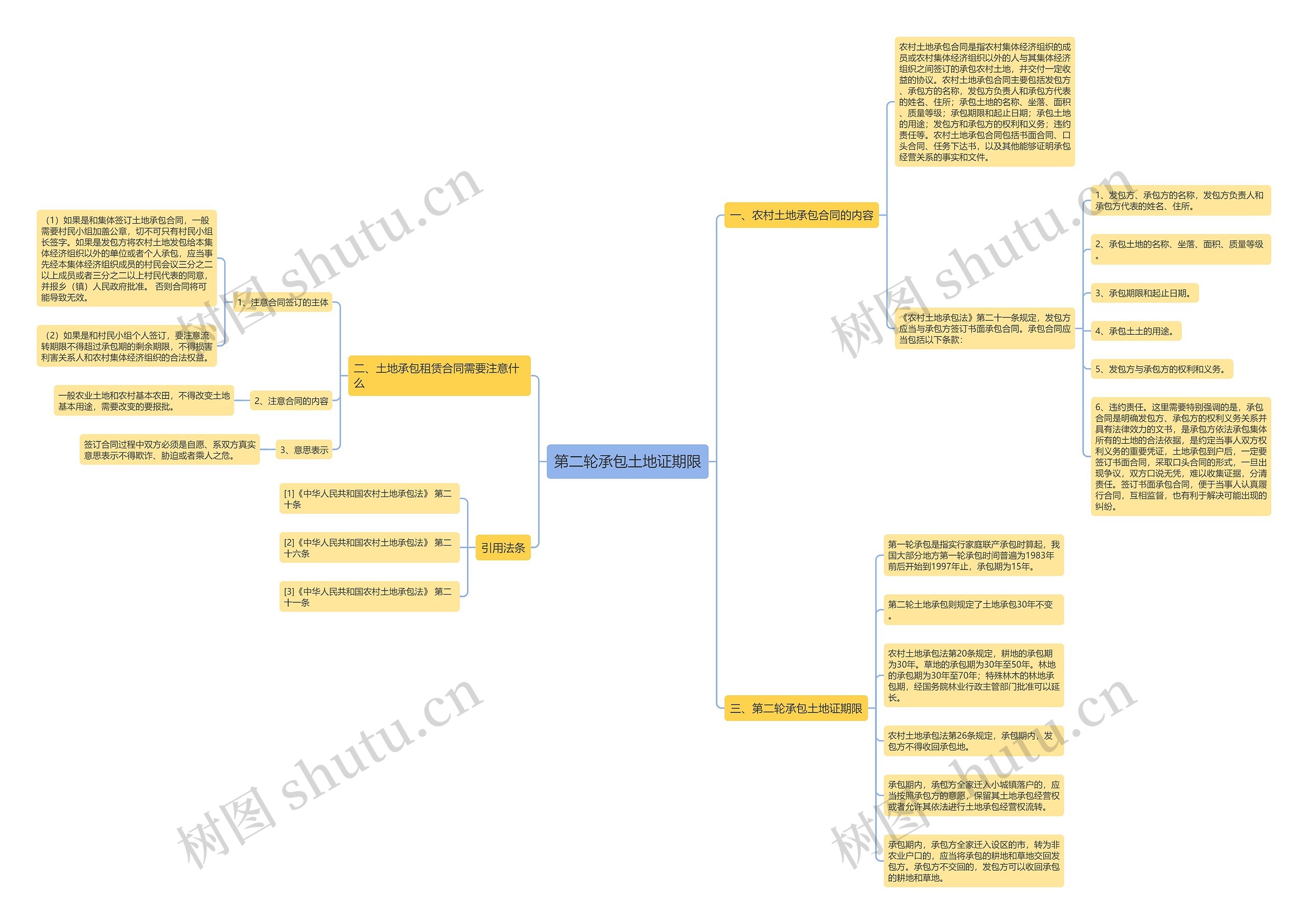 树图思维导图提供《第二轮承包土地证期限》在线思维导图免费制作,点击“编辑”按钮,可对《第二轮承包土地证期限》进行在线思维导图编辑,本思维导图属于思维导图模板主题,文件编号是:66d2f9661f6ec5b04740ea407031935d