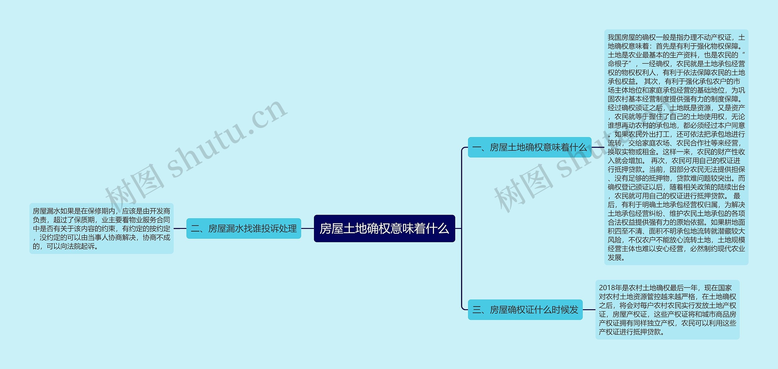 树图思维导图提供《房屋土地确权意味着什么》在线思维导图免费制作,点击“编辑”按钮,可对《房屋土地确权意味着什么》进行在线思维导图编辑,本思维导图属于思维导图模板主题,文件编号是:f2f96a361f05f6d10c8f2d3658ce33c0