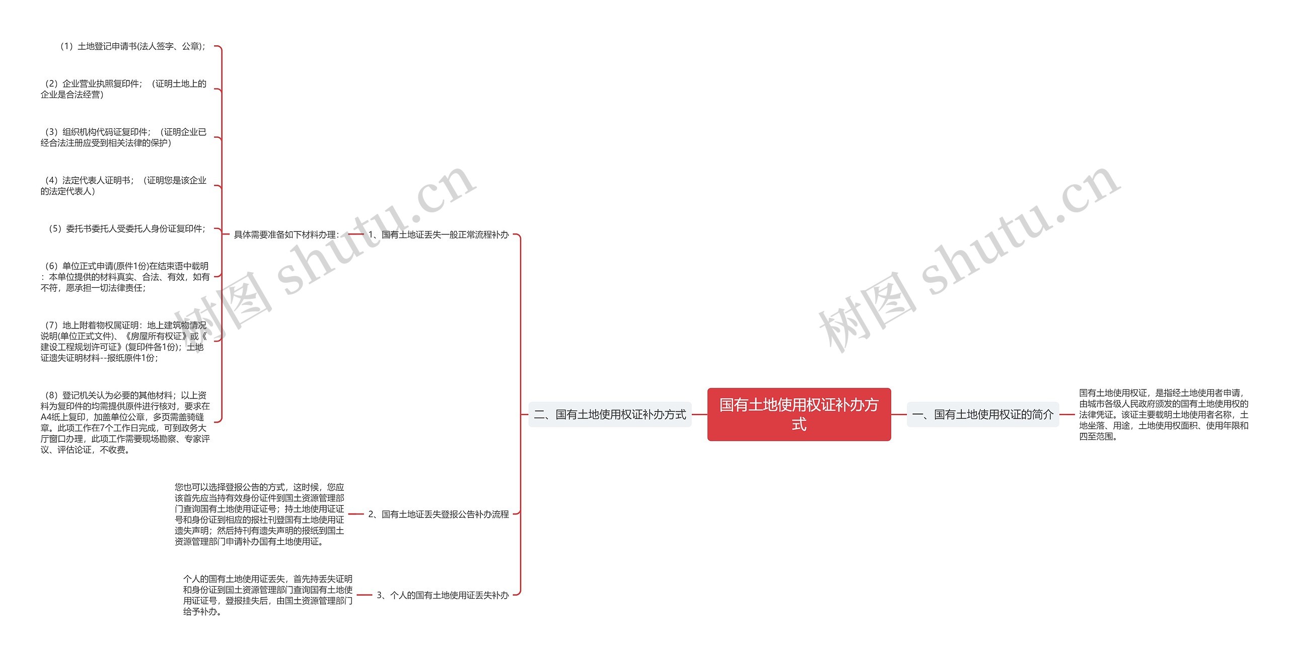 树图思维导图提供《国有土地使用权证补办方式》在线思维导图免费制作,点击“编辑”按钮,可对《国有土地使用权证补办方式》进行在线思维导图编辑,本思维导图属于思维导图模板主题,文件编号是:0c7e75907dd461a77cb2a9cbe881f959