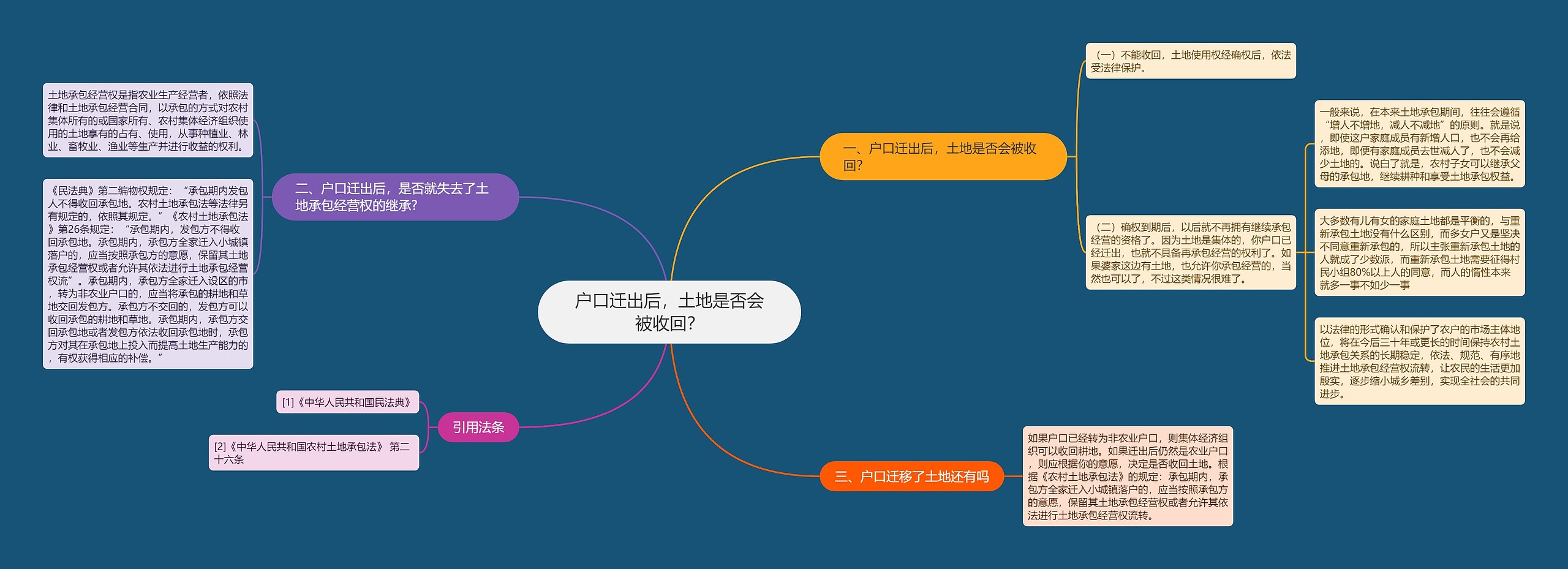 树图思维导图提供《户口迁出后,土地是否会被收回?》在线思维导图免费制作,点击“编辑”按钮,可对《户口迁出后,土地是否会被收回?》进行在线思维导图编辑,本思维导图属于思维导图模板主题,文件编号是:b928c416d332dd887af2cf3dd7f20917
