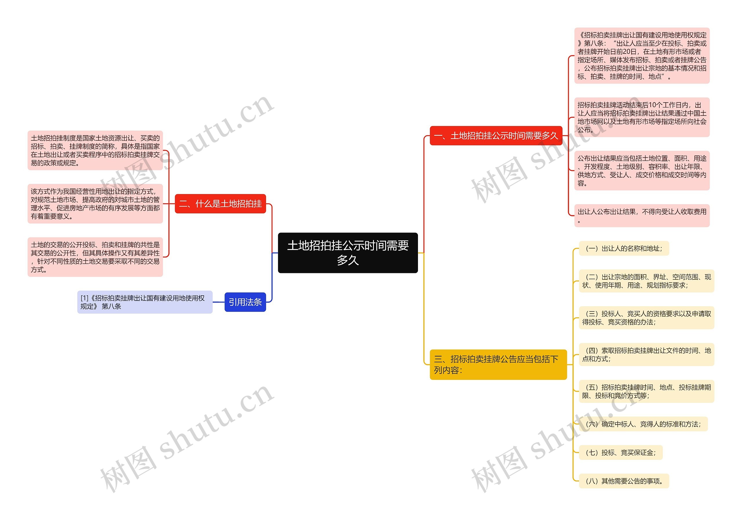 树图思维导图提供《土地招拍挂公示时间需要多久》在线思维导图免费制作,点击“编辑”按钮,可对《土地招拍挂公示时间需要多久》进行在线思维导图编辑,本思维导图属于思维导图模板主题,文件编号是:110c7fe78eb977285fde628370265a7f