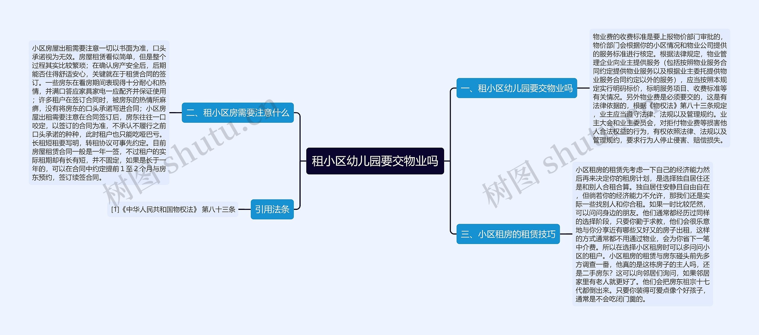 树图思维导图提供《租小区幼儿园要交物业吗》在线思维导图免费制作,点击“编辑”按钮,可对《租小区幼儿园要交物业吗》进行在线思维导图编辑,本思维导图属于思维导图模板主题,文件编号是:d9a20ec95dd6ecabae9c46509291eb44