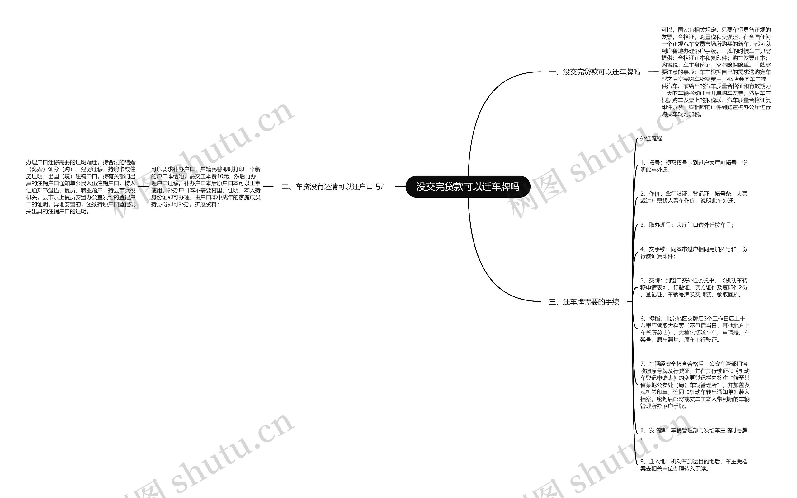 树图思维导图提供《没交完贷款可以迁车牌吗》在线思维导图免费制作,点击“编辑”按钮,可对《没交完贷款可以迁车牌吗》进行在线思维导图编辑,本思维导图属于思维导图模板主题,文件编号是:a8333e9ba1177882e543b021ba62dbc9