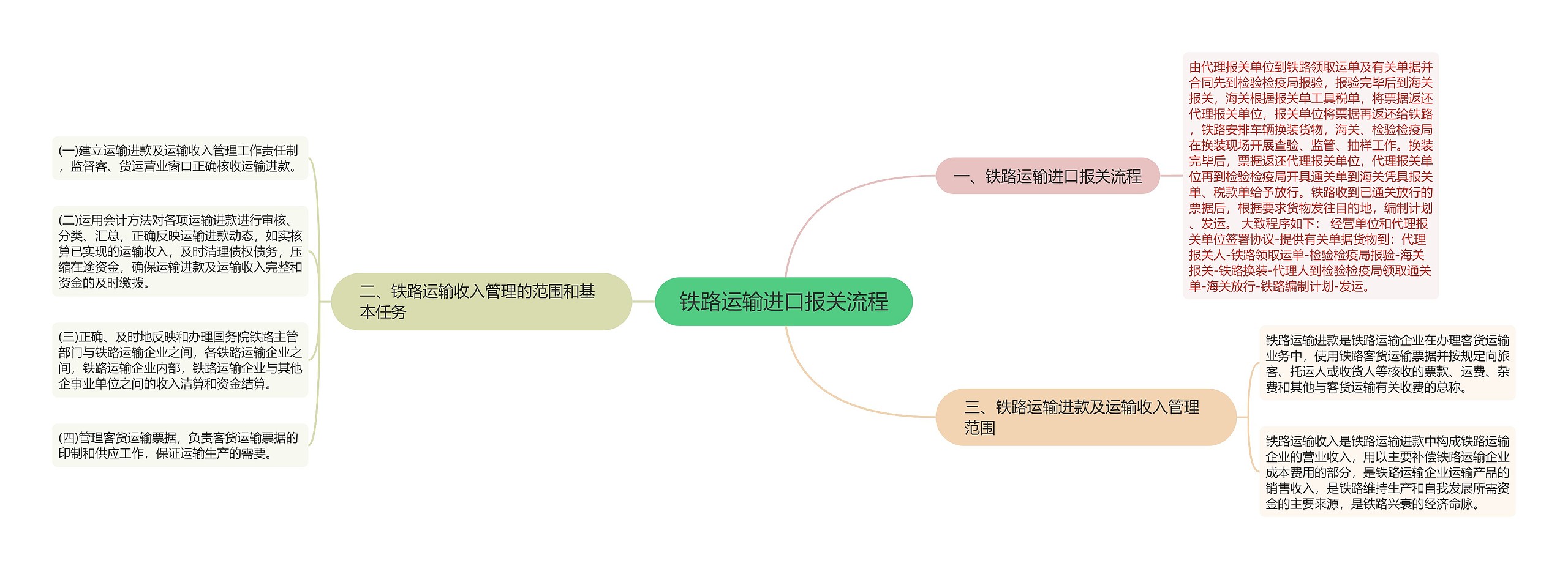 树图思维导图提供《铁路运输进口报关流程》在线思维导图免费制作,点击“编辑”按钮,可对《铁路运输进口报关流程》进行在线思维导图编辑,本思维导图属于思维导图模板主题,文件编号是:9e6a666432fd5de4aab4ac5d9421b4a3