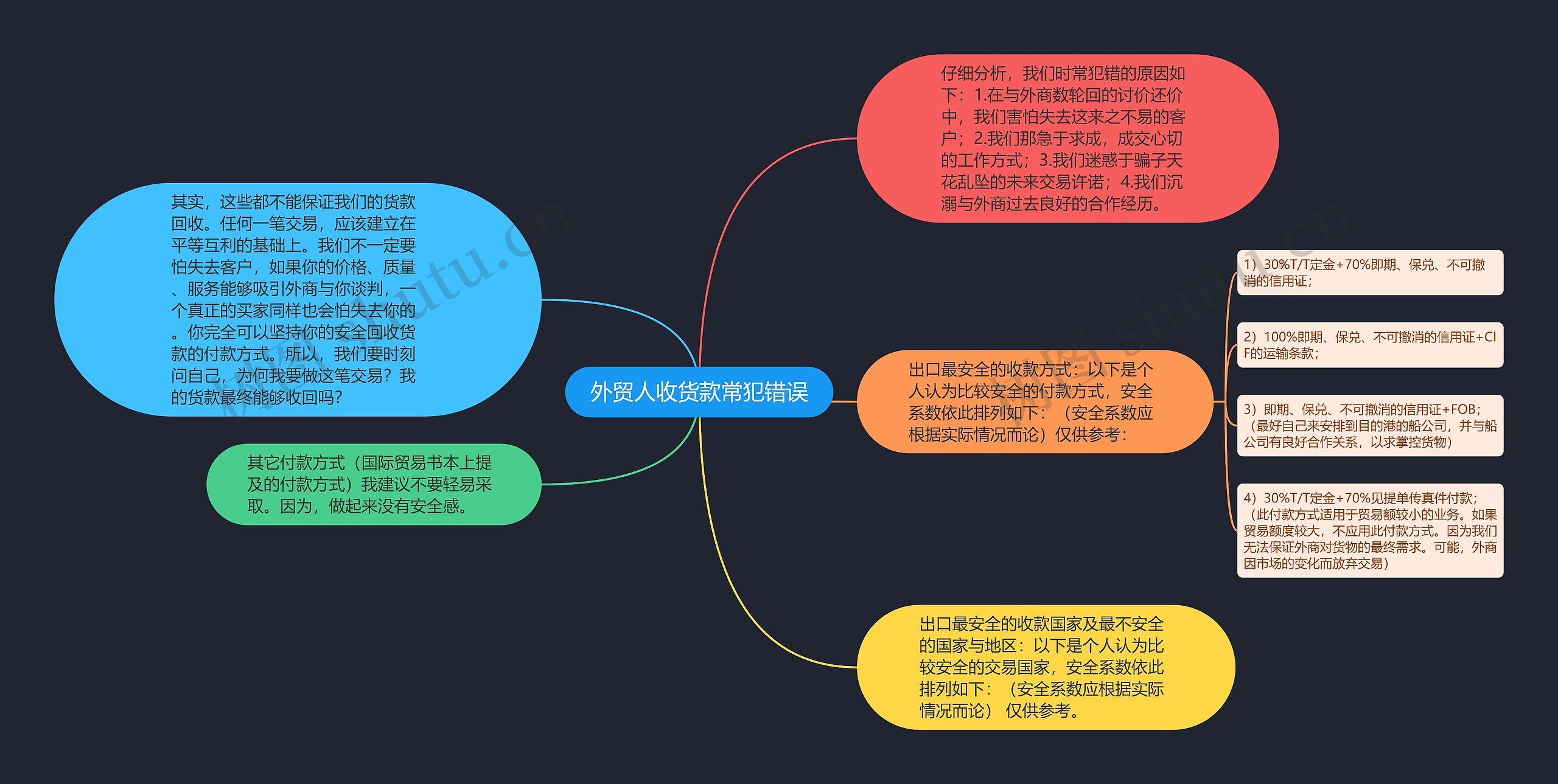 其实,这些都不能保证我们的货款回收。任何一笔交易,应该建立在平等互利的基础上。我们不一定要怕失去客户,如果你的价格、质量、服务能够吸引外商与你谈判,一个真正的买家同样也会怕失去你的。你完全可以坚持你的安全回收货款的付款方式。所以,我们要时刻问自己,为何我要做这笔交易?我的货款最终能够收回吗?
