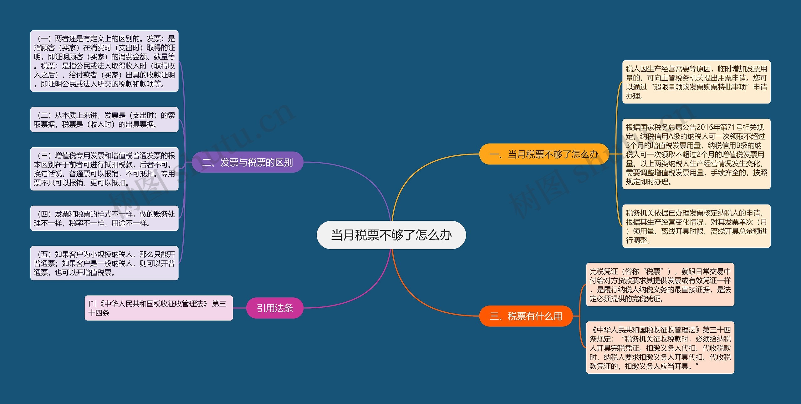 树图思维导图提供《当月税票不够了怎么办》在线思维导图免费制作,点击“编辑”按钮,可对《当月税票不够了怎么办》进行在线思维导图编辑,本思维导图属于思维导图模板主题,文件编号是:91e8090b23bc1fa8f6ea4c3b7b2e5158