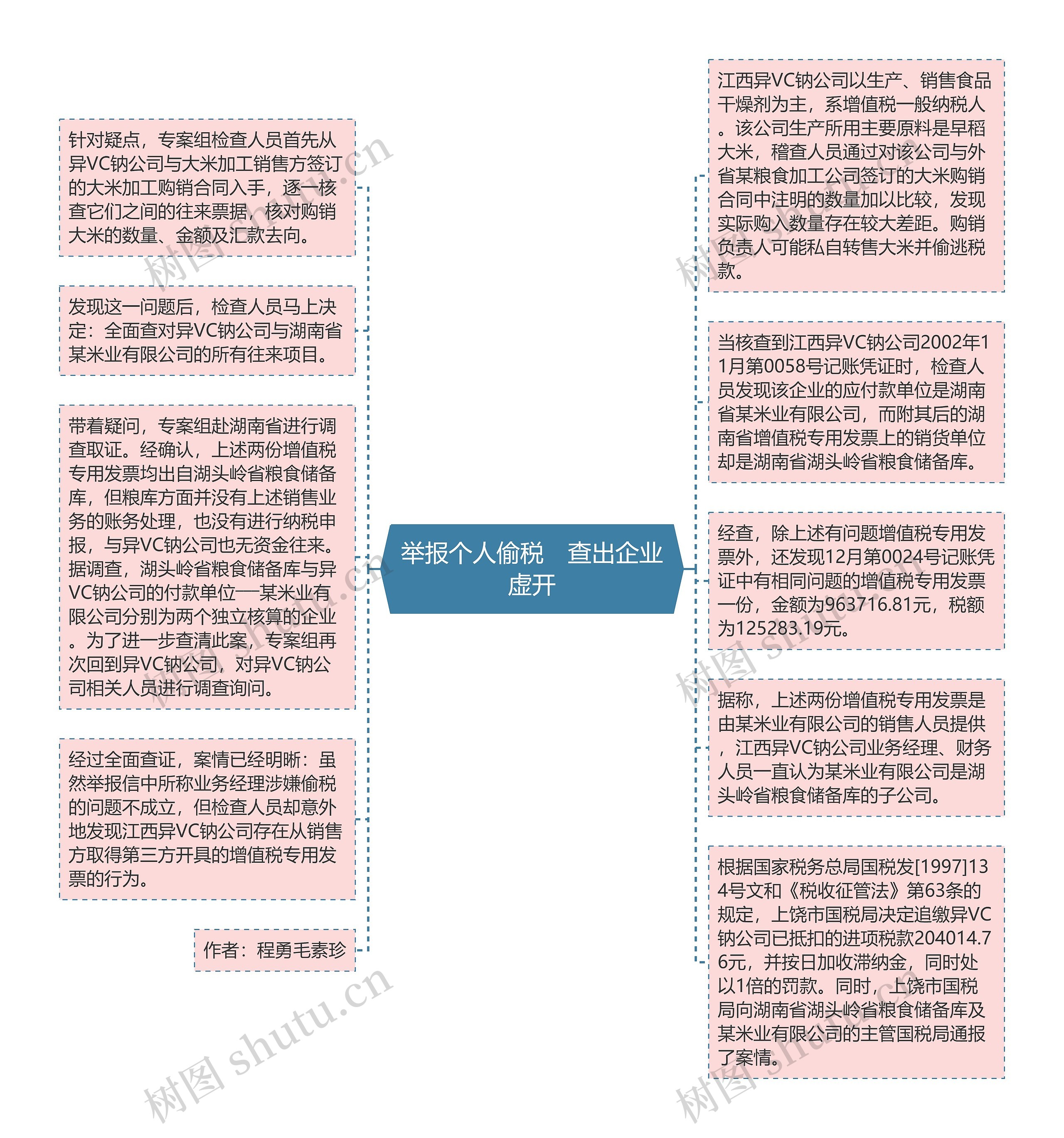 带着疑问,专案组赴湖南省进行调查取证。经确认,上述两份增值税专用发票均出自湖头岭省粮食储备库,但粮库方面并没有上述销售业务的账务处理,也没有进行纳税申报,与异VC钠公司也无资金往来。据调查,湖头岭省粮食储备库与异VC钠公司的付款单位―――某米业有限公司分别为两个独立核算的企业。为了进一步查清此案,专案组再次回到异VC钠公司,对异VC钠公司相关人员进行调查询问。