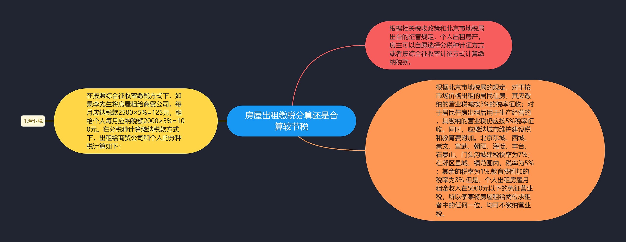 树图思维导图提供《房屋出租缴税分算还是合算较节税》在线思维导图免费制作,点击“编辑”按钮,可对《房屋出租缴税分算还是合算较节税》进行在线思维导图编辑,本思维导图属于思维导图模板主题,文件编号是:6f1d273a802797cee893b8484d3e59fd