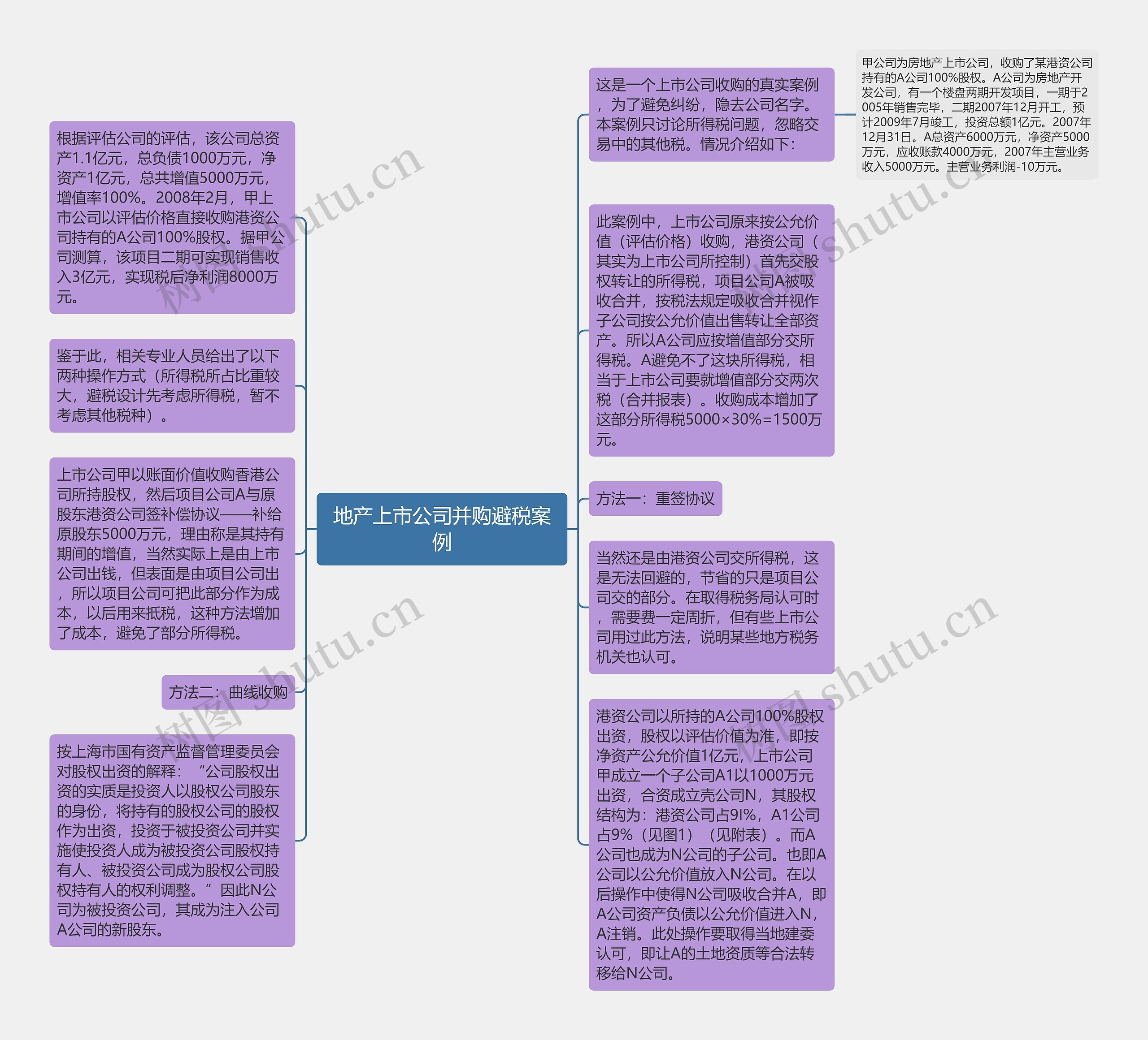 此案例中,上市公司原来按公允价值(评估价格)收购,港资公司(其实为上市公司所控制)首先交股权转让的所得税,项目公司A被吸收合并,按税法规定吸收合并视作子公司按公允价值出售转让全部资产。所以A公司应按增值部分交所得税。A避免不了这块所得税,相当于上市公司要就增值部分交两次税(合并报表)。收购成本增加了这部分所得税5000×30%=1500万元。