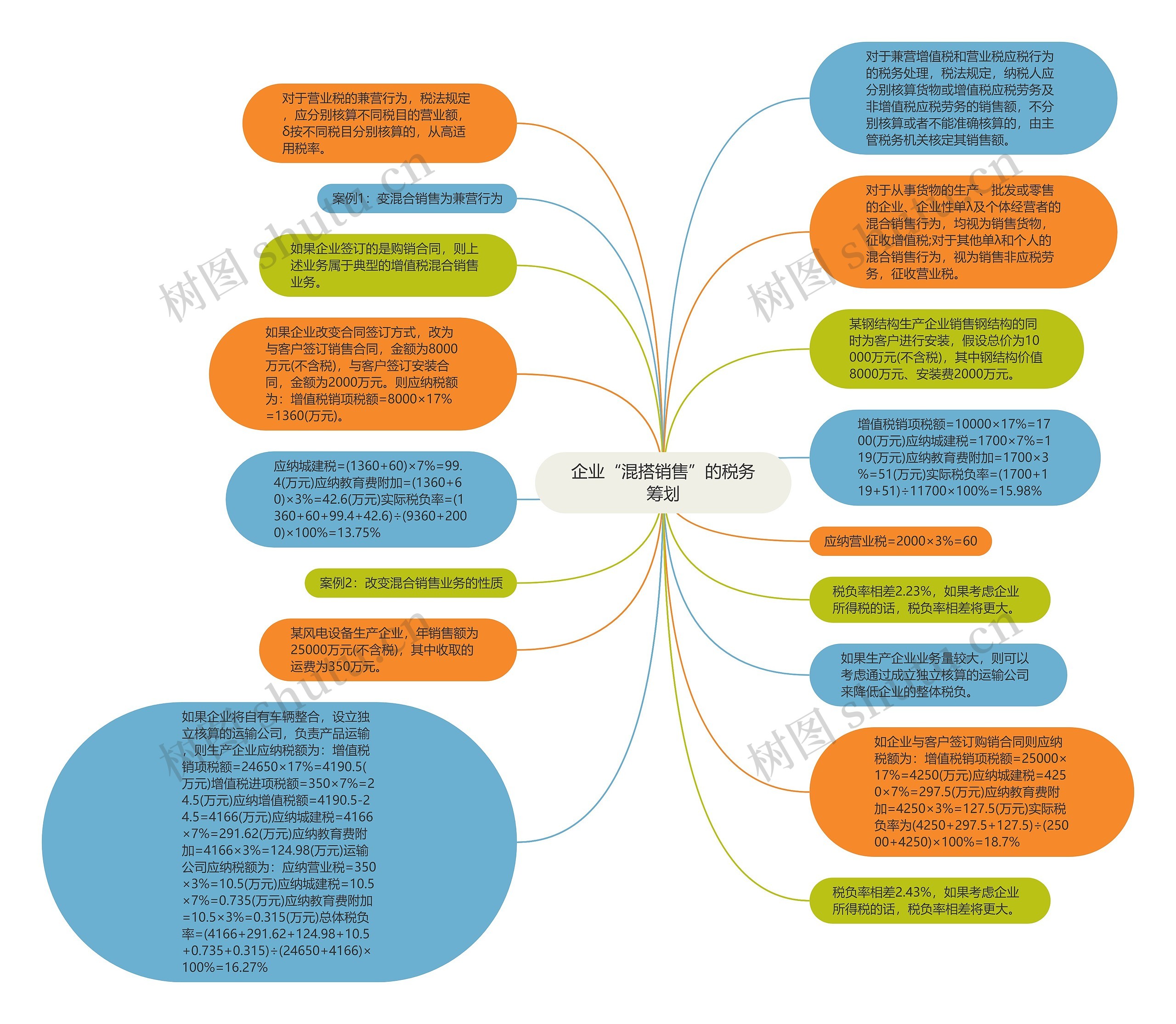 如企业与客户签订购销合同则应纳税额为:增值税销项税额=25000×17%=4250(万元)应纳城建税=4250×7%=297.5(万元)应纳教育费附加=4250×3%=127.5(万元)实际税负率为(4250+297.5+127.5)÷(25000+4250)×100%=18.7%