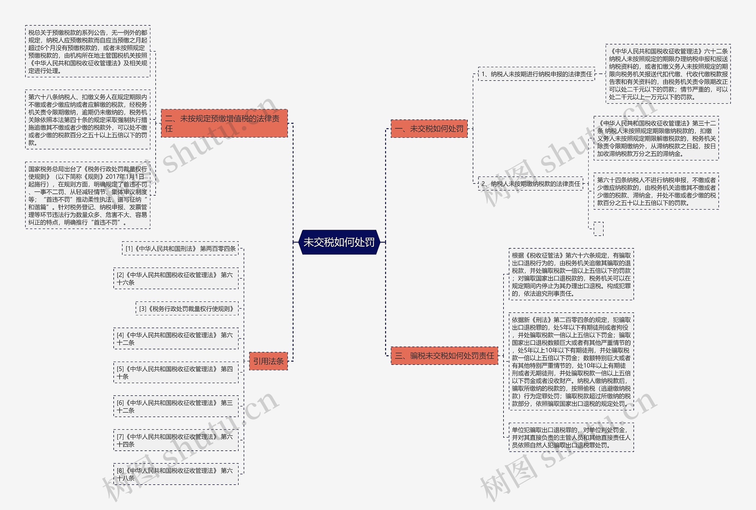 树图思维导图提供《未交税如何处罚》在线思维导图免费制作,点击“编辑”按钮,可对《未交税如何处罚》进行在线思维导图编辑,本思维导图属于思维导图模板主题,文件编号是:66705d89633ea122ce001dae7d388cac