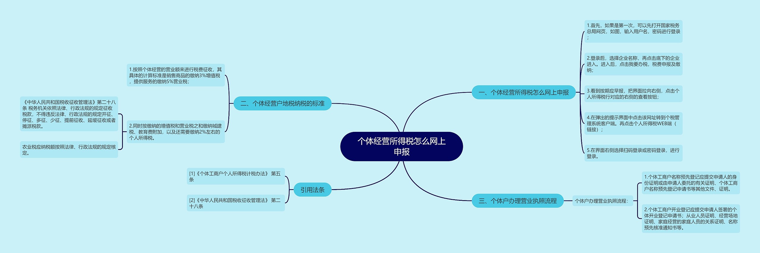 树图思维导图提供《个体经营所得税怎么网上申报》在线思维导图免费制作,点击“编辑”按钮,可对《个体经营所得税怎么网上申报》进行在线思维导图编辑,本思维导图属于思维导图模板主题,文件编号是:9f7a695c85be1b8582212bd1a40af012