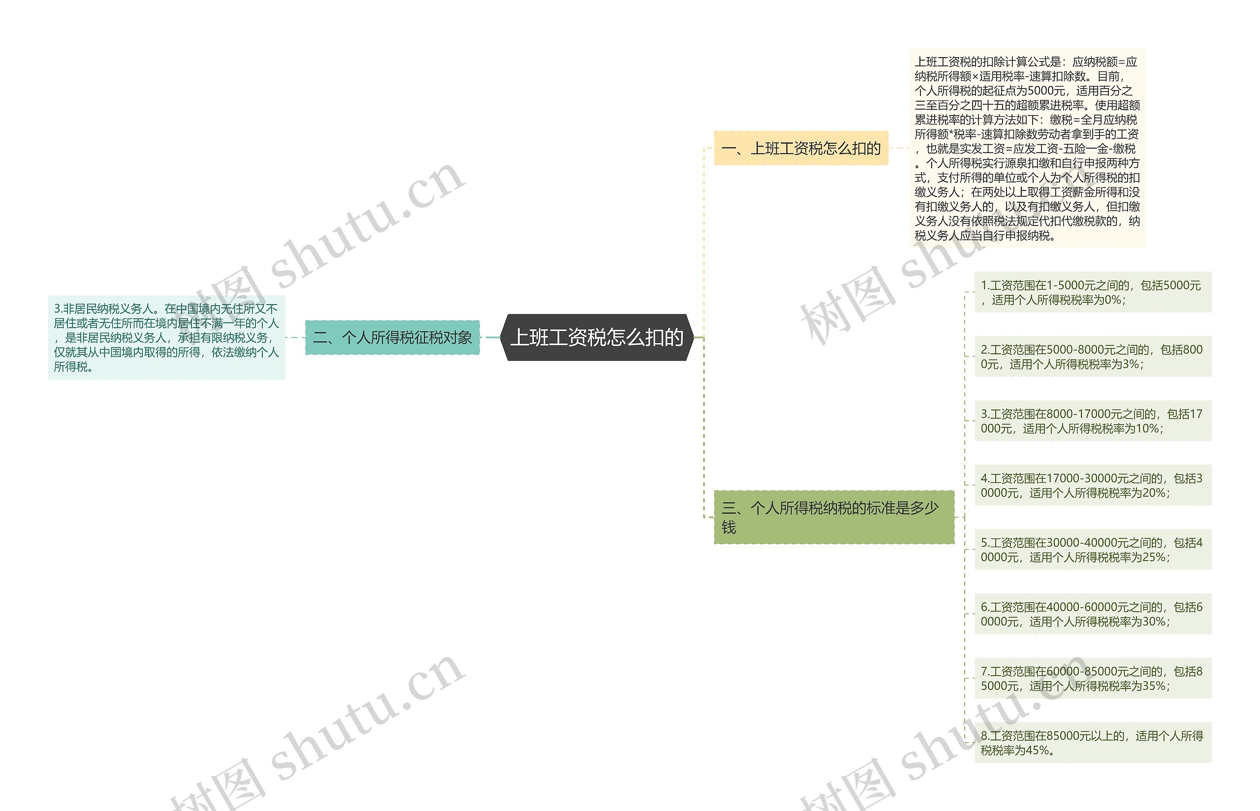 树图思维导图提供《上班工资税怎么扣的》在线思维导图免费制作,点击“编辑”按钮,可对《上班工资税怎么扣的》进行在线思维导图编辑,本思维导图属于思维导图模板主题,文件编号是:70894825f6675820847317f8e26b4c55