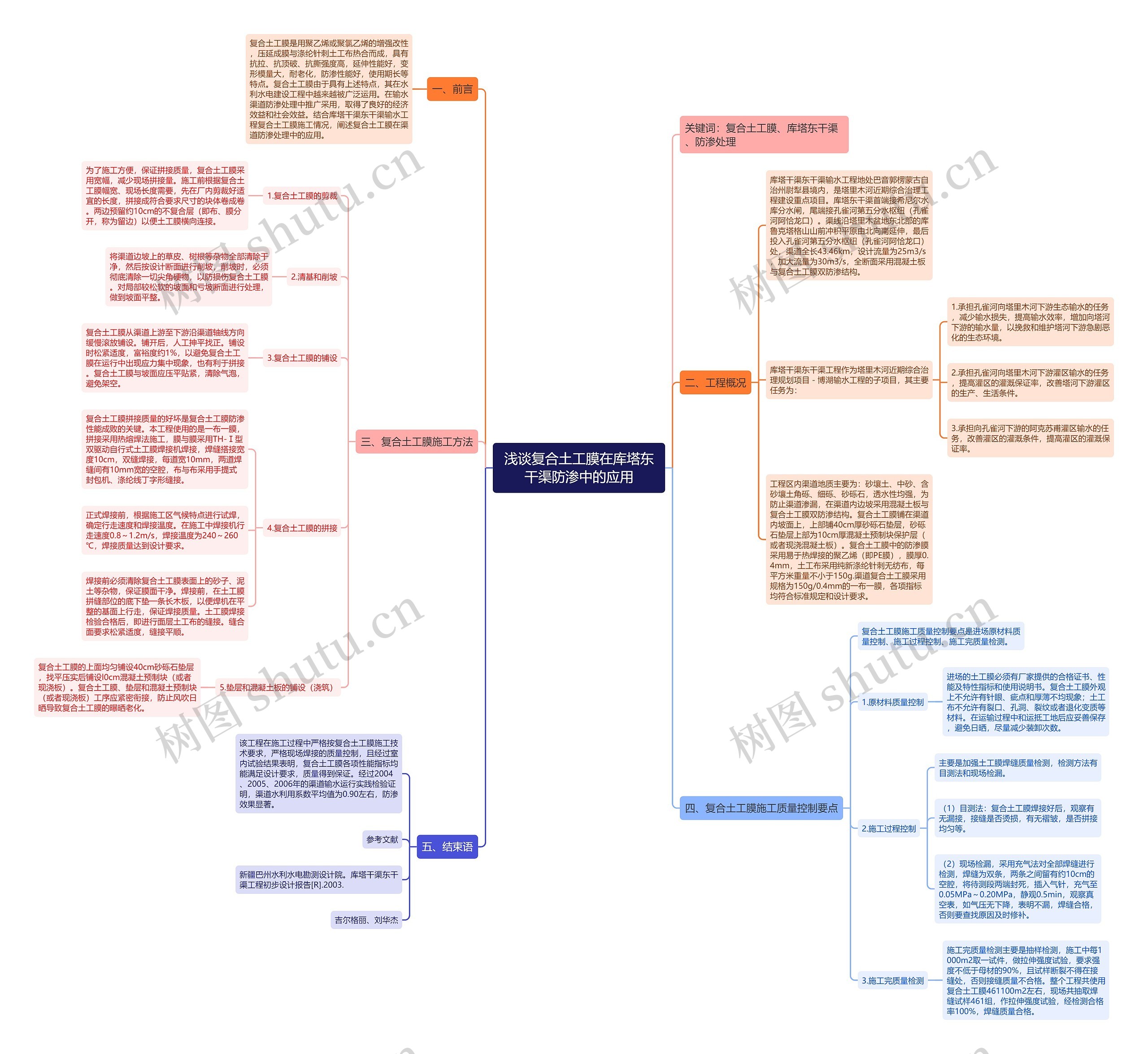 树图思维导图提供《浅谈复合土工膜在库塔东干渠防渗中的应用》在线思维导图免费制作,点击“编辑”按钮,可对《浅谈复合土工膜在库塔东干渠防渗中的应用》进行在线思维导图编辑,本思维导图属于思维导图模板主题,文件编号是:b1ba21d6991dfa4b2b937d9b8cbcd41e