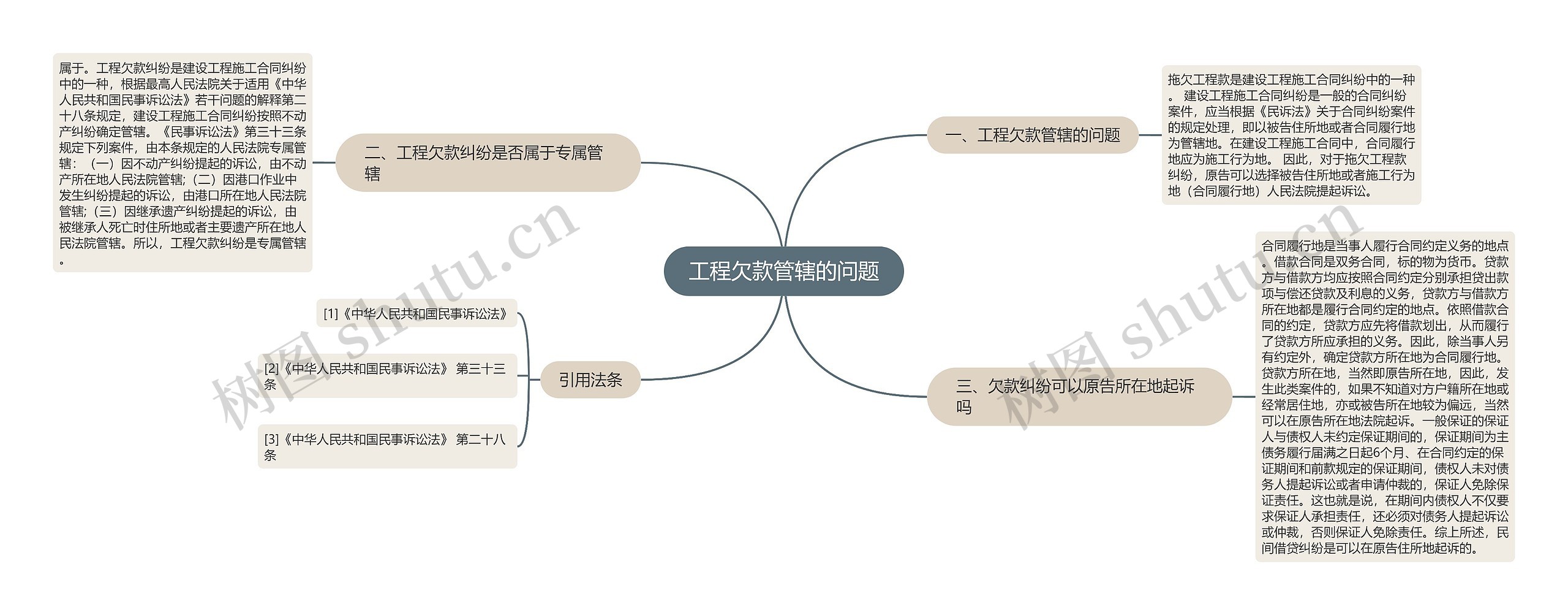 树图思维导图提供《工程欠款管辖的问题》在线思维导图免费制作,点击“编辑”按钮,可对《工程欠款管辖的问题》进行在线思维导图编辑,本思维导图属于思维导图模板主题,文件编号是:5ef9345f7b0cdad4e03a3373e5f0d547