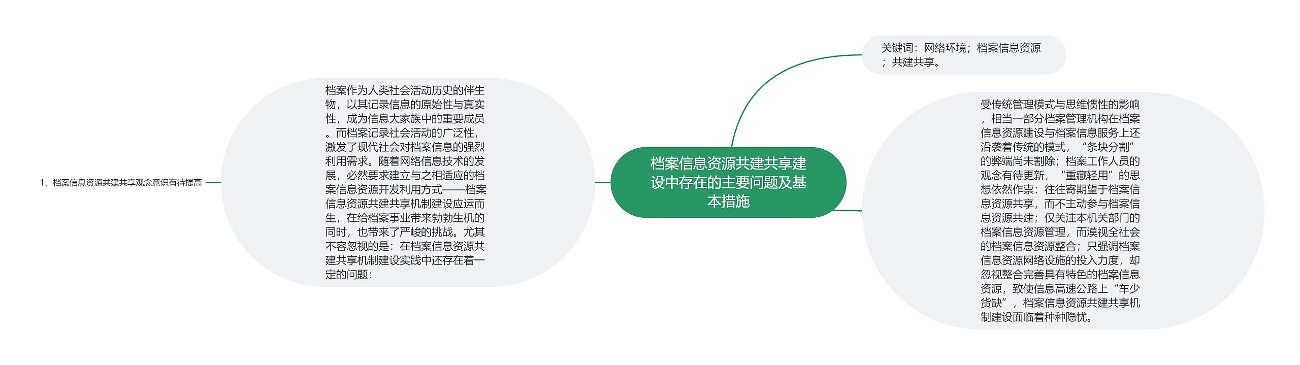 树图思维导图提供《档案信息资源共建共享建设中存在的主要问题及基本措施》在线思维导图免费制作,点击“编辑”按钮,可对《档案信息资源共建共享建设中存在的主要问题及基本措施》进行在线思维导图编辑,本思维导图属于思维导图模板主题,文件编号是:21043dc8226f3889250f3e993f30c22f
