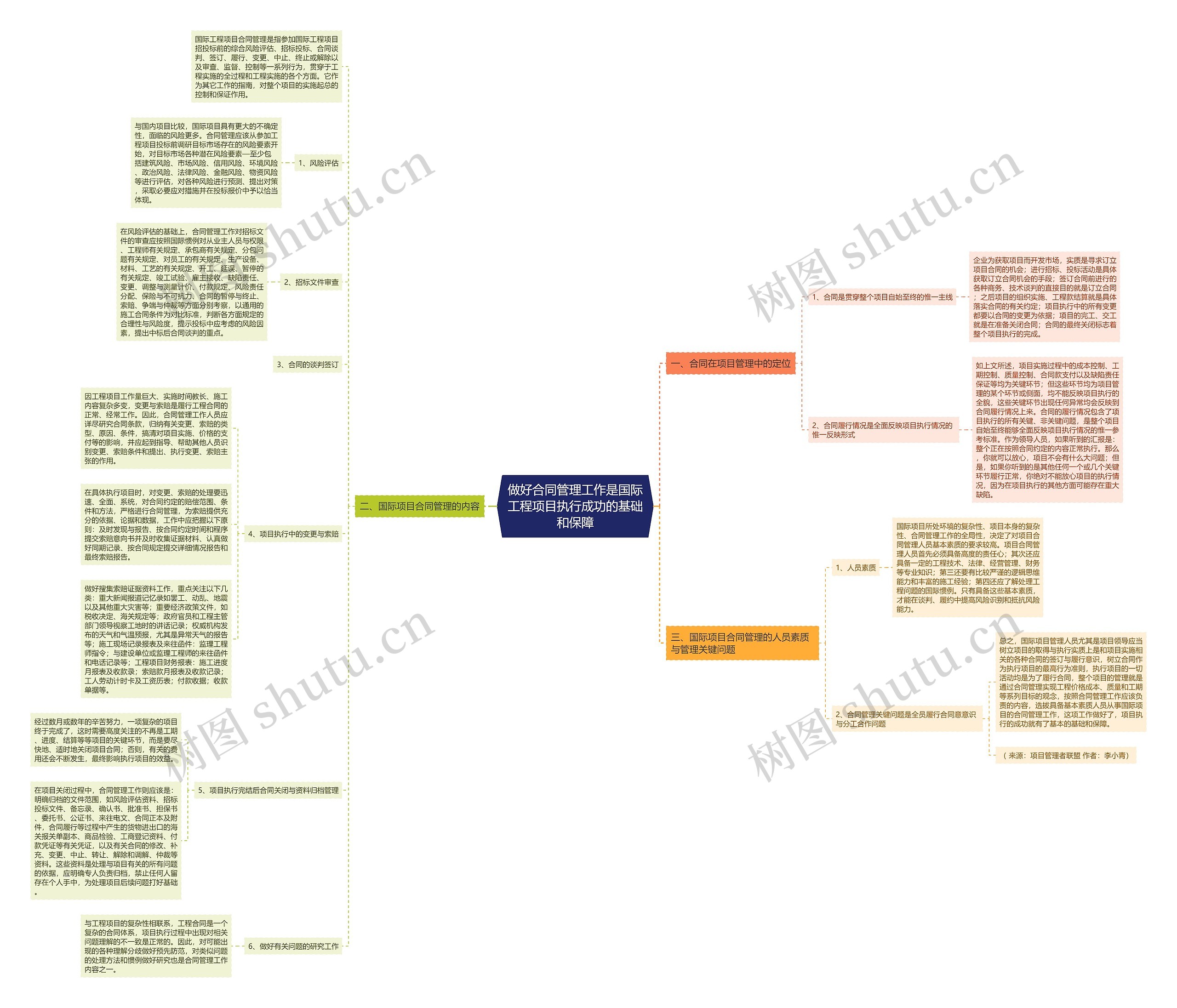 树图思维导图提供《做好合同管理工作是国际工程项目执行成功的基础和保障》在线思维导图免费制作,点击“编辑”按钮,可对《做好合同管理工作是国际工程项目执行成功的基础和保障》进行在线思维导图编辑,本思维导图属于思维导图模板主题,文件编号是:32cf29095a27a5560d6623ebc8703963