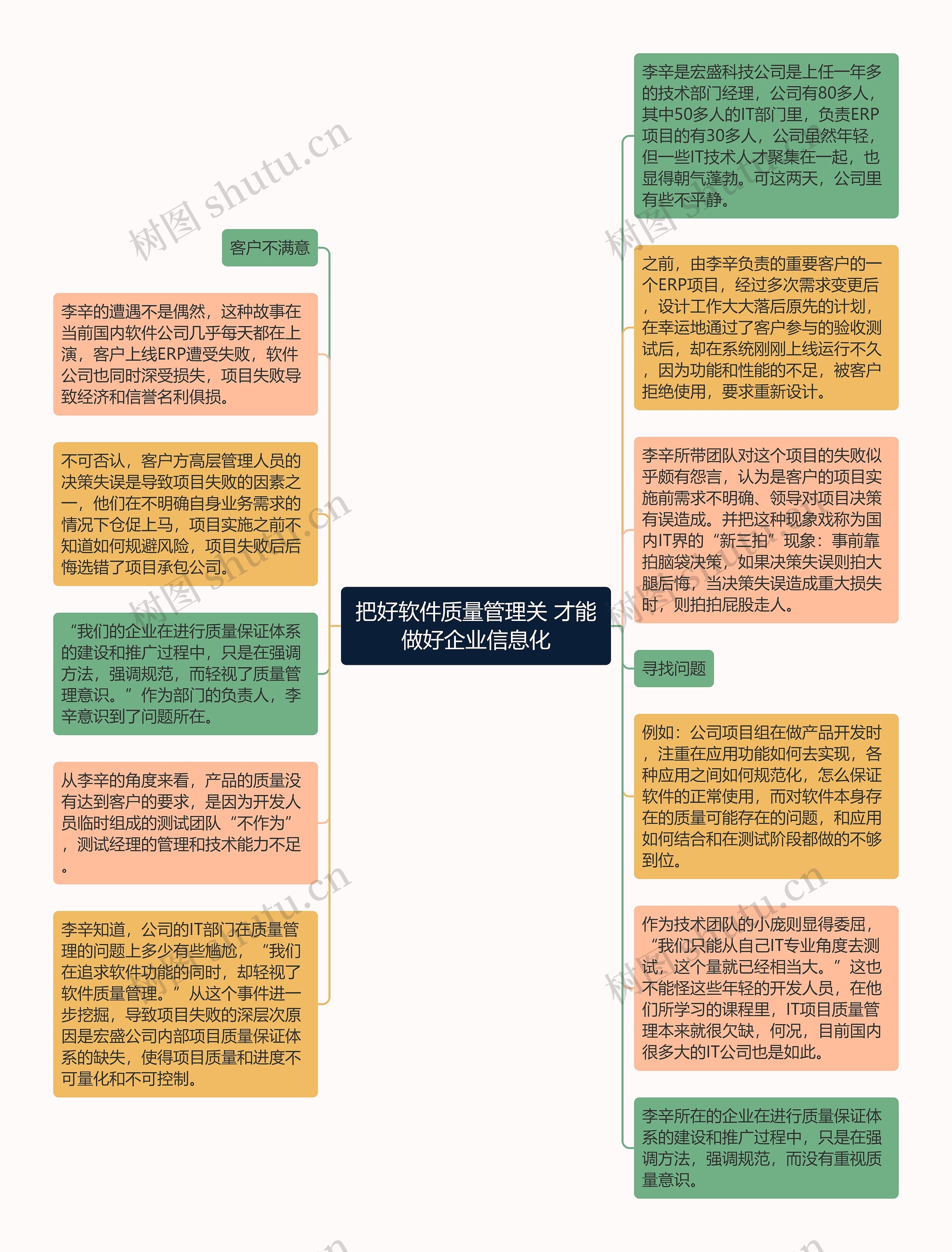 李辛知道,公司的IT部门在质量管理的问题上多少有些尴尬,“我们在追求软件功能的同时,却轻视了软件质量管理。”从这个事件进一步挖掘,导致项目失败的深层次原因是宏盛公司内部项目质量保证体系的缺失,使得项目质量和进度不可量化和不可控制。
