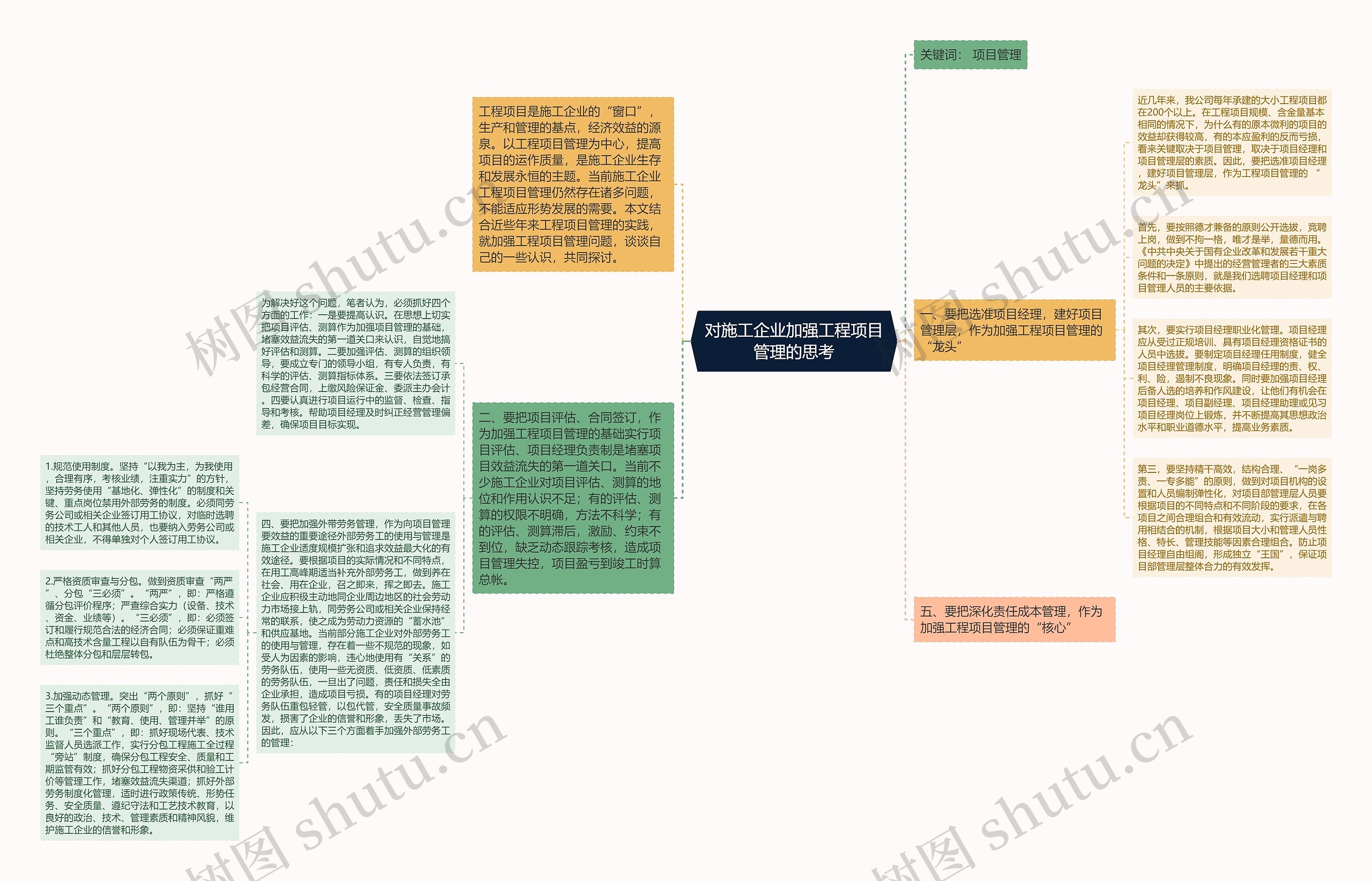 树图思维导图提供《对施工企业加强工程项目管理的思考》在线思维导图免费制作,点击“编辑”按钮,可对《对施工企业加强工程项目管理的思考》进行在线思维导图编辑,本思维导图属于思维导图模板主题,文件编号是:10eefd6ee2e9a5da602220c0ebf06fed