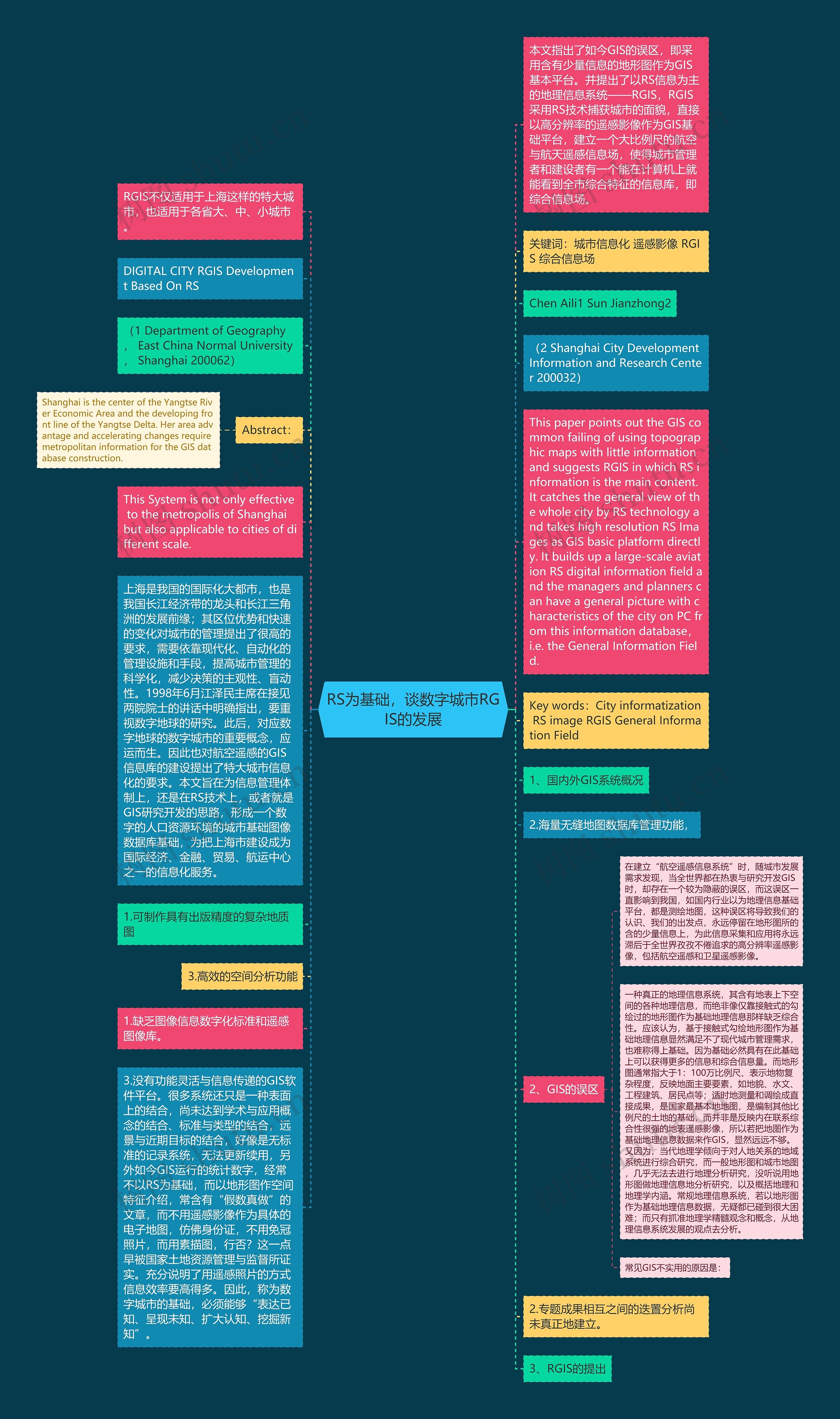 本文指出了如今GIS的误区,即采用含有少量信息的地形图作为GIS基本平台。并提出了以RS信息为主的地理信息系统——RGIS,RGIS采用RS技术捕获城市的面貌,直接以高分辨率的遥感影像作为GIS基础平台,建立一个大比例尺的航空与航天遥感信息场,使得城市管理者和建设者有一个能在计算机上就能看到全市综合特征的信息库,即综合信息场。