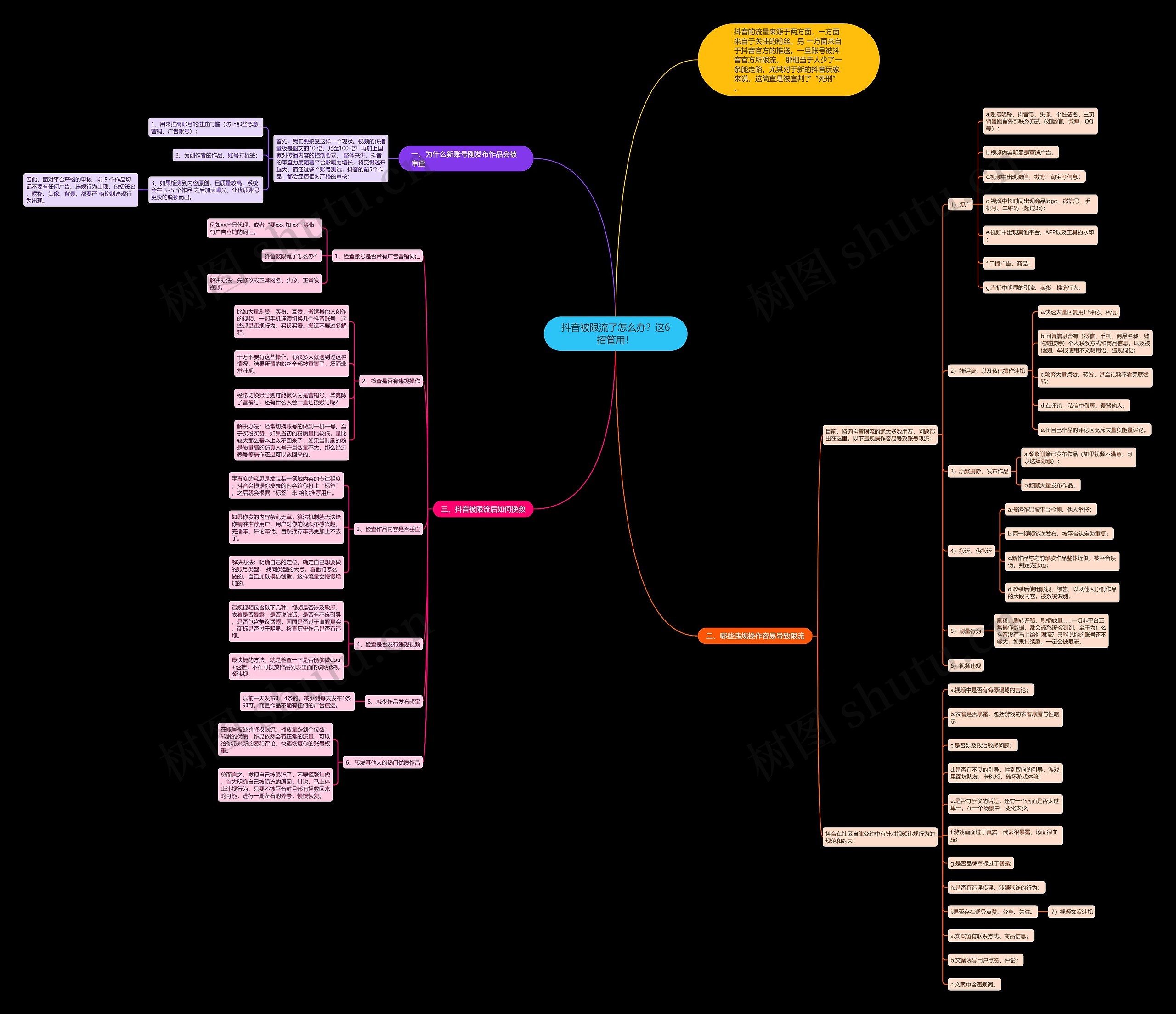 树图思维导图提供《抖音被限流了怎么办?这6招管用!》在线思维导图免费制作,点击“编辑”按钮,可对《抖音被限流了怎么办?这6招管用!》进行在线思维导图编辑,本思维导图属于思维导图模板主题,文件编号是:ae8453cb4c85c0087b76195459911554