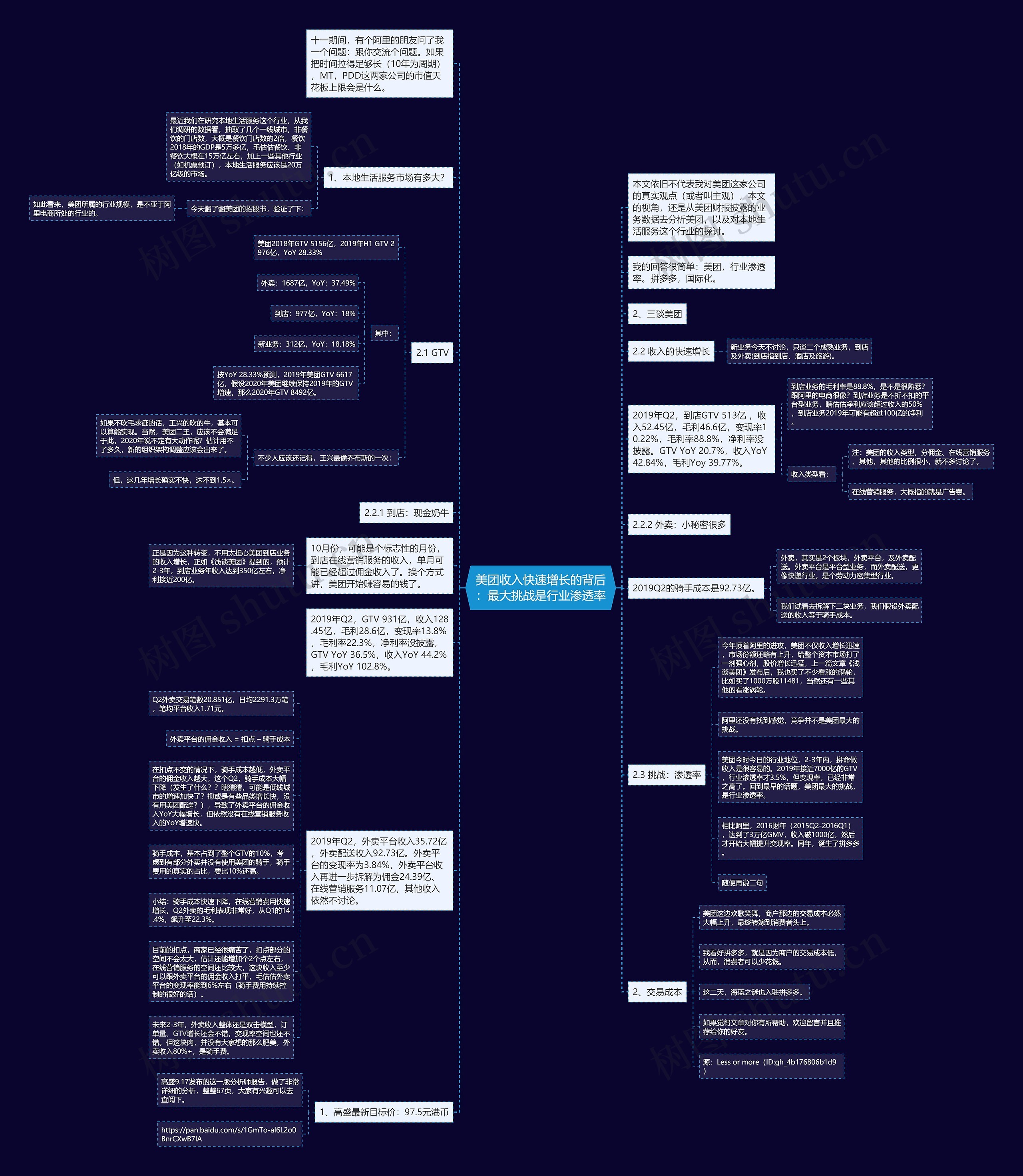 未来2-3年,外卖收入整体还是双击模型,订单量、GTV增长还会不错,变现率空间也还不错。但这块肉,并没有大家想的那么肥美,外卖收入80%+,是骑手费。