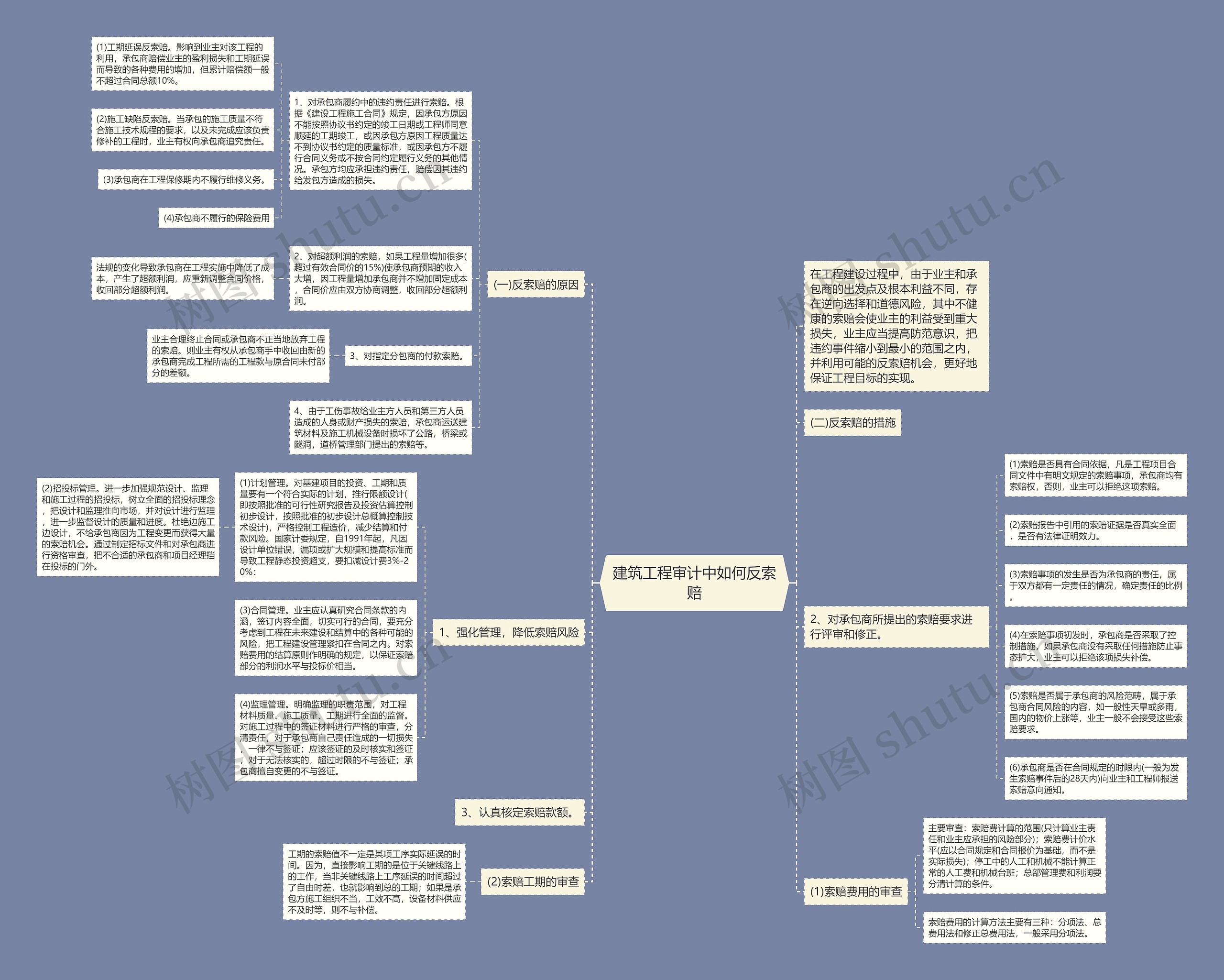 树图思维导图提供《建筑工程审计中如何反索赔》在线思维导图免费制作,点击“编辑”按钮,可对《建筑工程审计中如何反索赔》进行在线思维导图编辑,本思维导图属于思维导图模板主题,文件编号是:b4791ec3f3f4ac0ba9279f1d1fa63c11