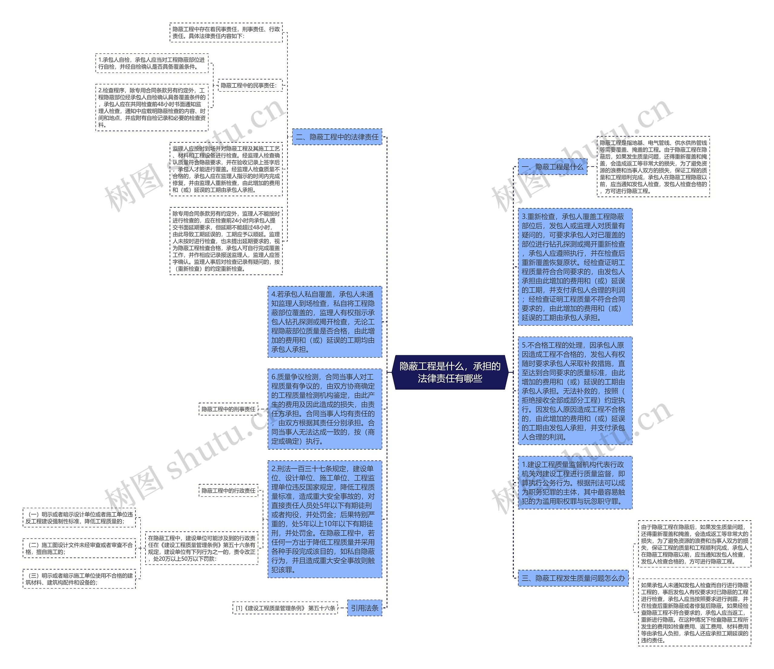 隐蔽工程中存在着民事责任,刑事责任、行政责任。具体法律责任内容如下: