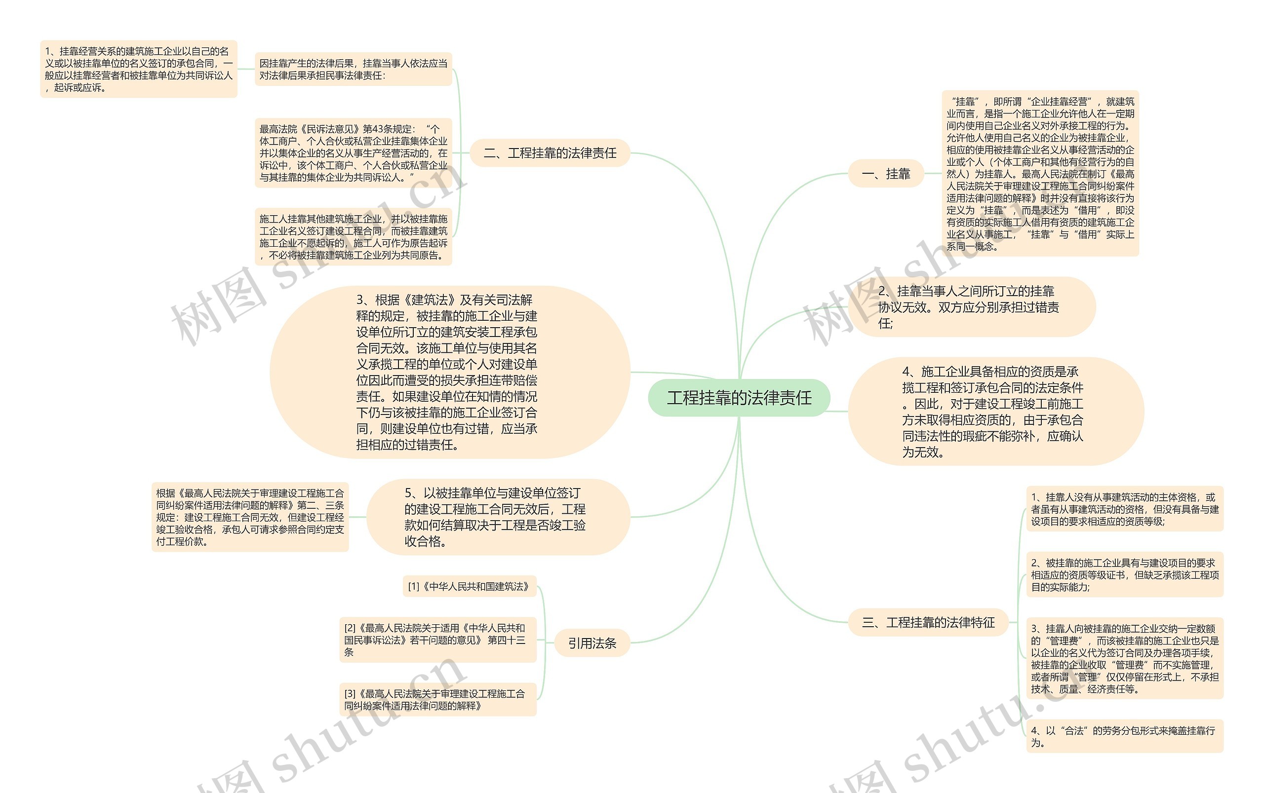 树图思维导图提供《工程挂靠的法律责任》在线思维导图免费制作,点击“编辑”按钮,可对《工程挂靠的法律责任》进行在线思维导图编辑,本思维导图属于思维导图模板主题,文件编号是:421751ffa4aa7adf60187607f7cca37d