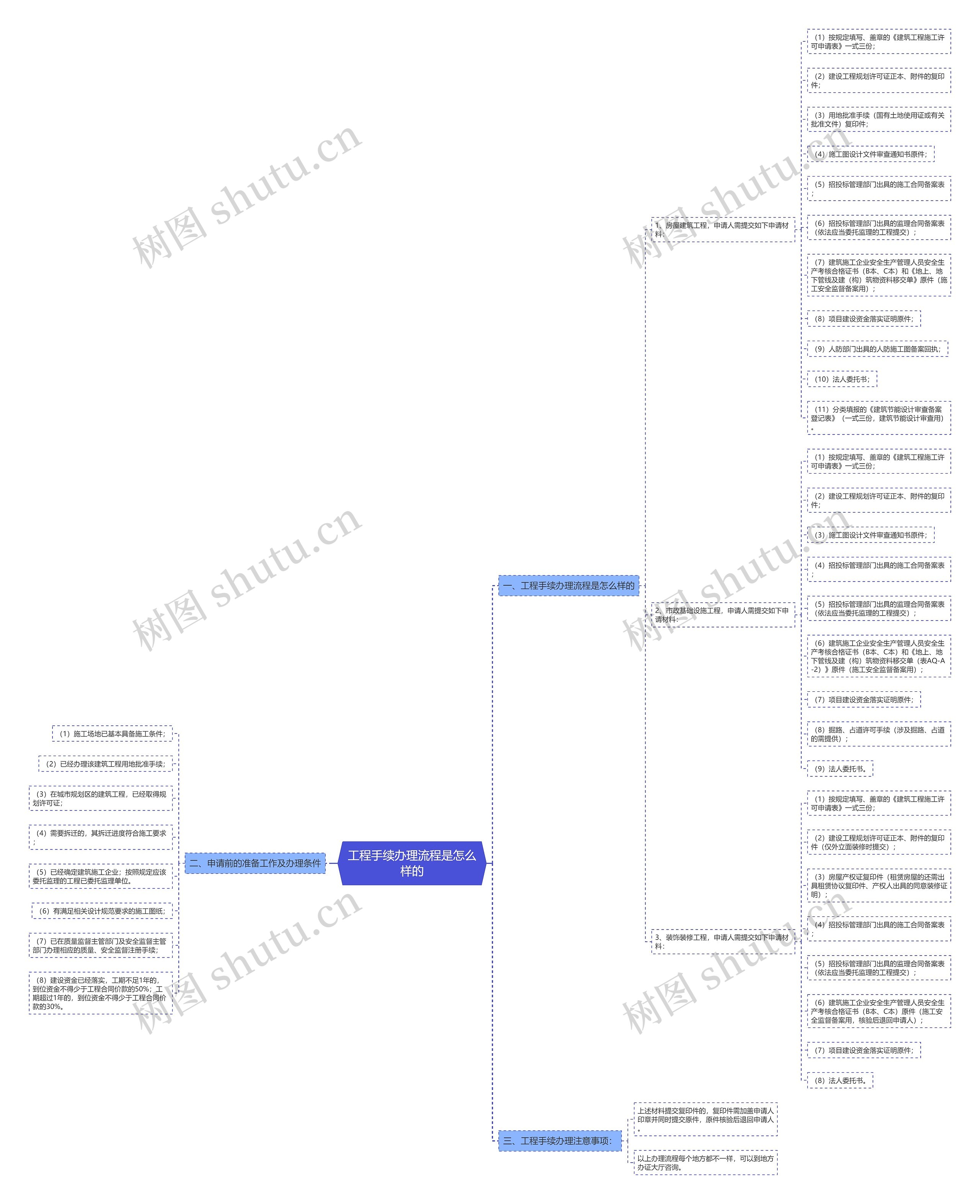 树图思维导图提供《工程手续办理流程是怎么样的》在线思维导图免费制作,点击“编辑”按钮,可对《工程手续办理流程是怎么样的》进行在线思维导图编辑,本思维导图属于思维导图模板主题,文件编号是:3b01cfcf6b6aeebf1b304102307569e1
