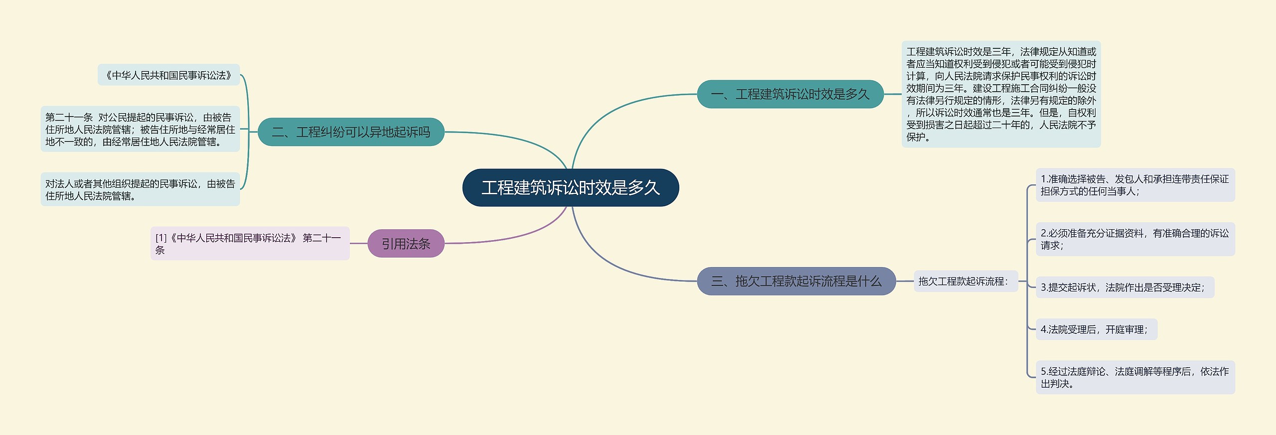 树图思维导图提供《工程建筑诉讼时效是多久》在线思维导图免费制作,点击“编辑”按钮,可对《工程建筑诉讼时效是多久》进行在线思维导图编辑,本思维导图属于思维导图模板主题,文件编号是:6bb91bfe32e40a8c951d7a57b570ba3d