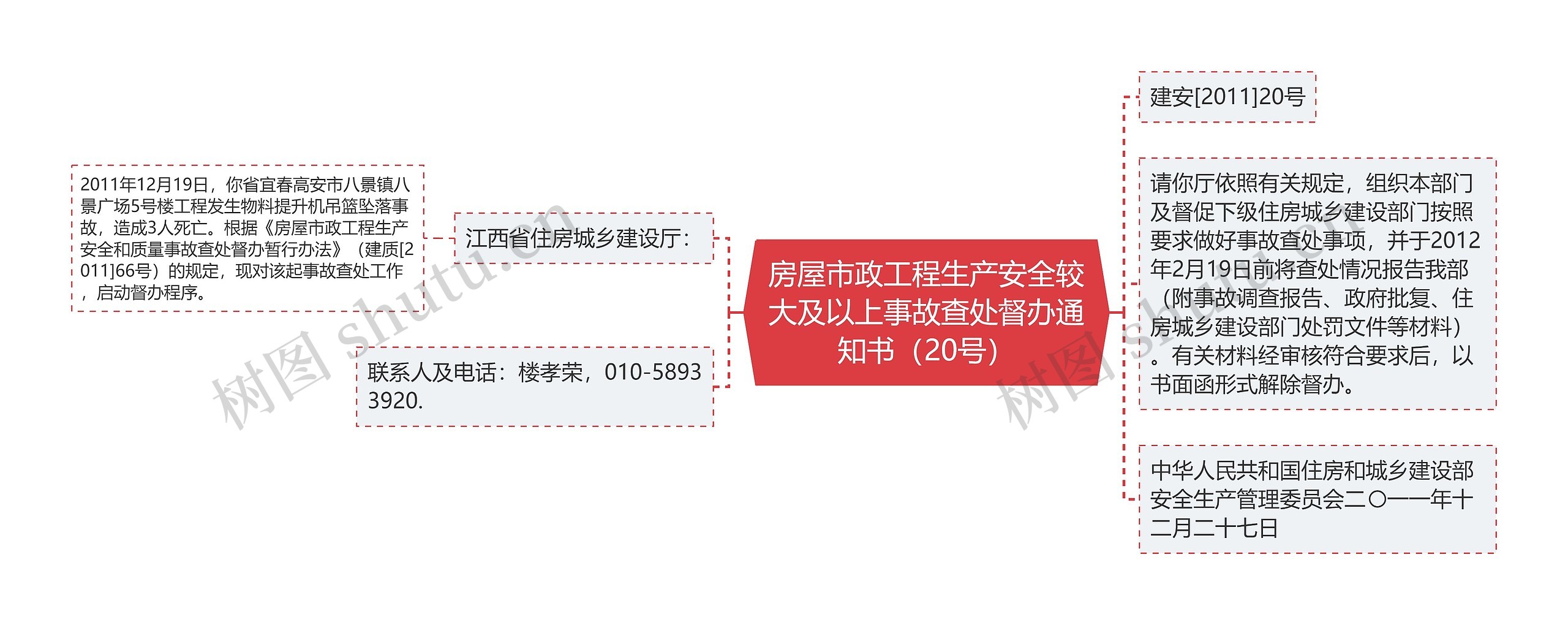 树图思维导图提供《房屋市政工程生产安全较大及以上事故查处督办通知书(20号)》在线思维导图免费制作,点击“编辑”按钮,可对《房屋市政工程生产安全较大及以上事故查处督办通知书(20号)》进行在线思维导图编辑,本思维导图属于思维导图模板主题,文件编号是:d039805e6884c47251ae0d7e348c5c98