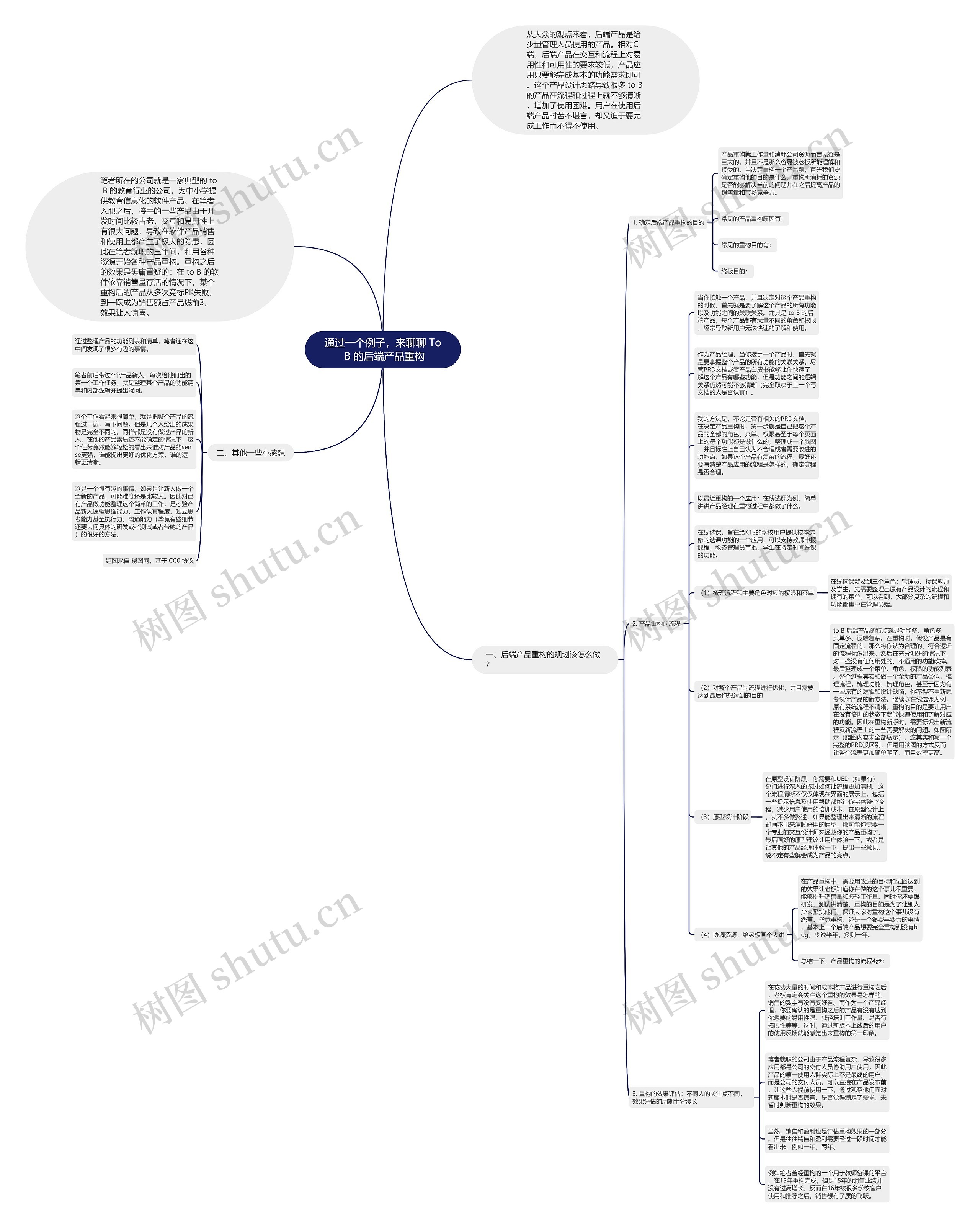 to B 后端产品的特点就是功能多、角色多、菜单多、逻辑复杂。在重构时,假设产品是有固定流程的,那么将你认为合理的、符合逻辑的流程标识出来。然后在充分调研的情况下,对一些没有任何用处的、不通用的功能砍掉。最后整理成一个菜单、角色、权限的功能列表。整个过程其实和做一个全新的产品类似,梳理流程,梳理功能,梳理角色。甚至于因为有一些原有的逻辑和设计缺陷,你不得不重新思考设计产品的新方法。继续以在线选课为例,原有系统流程不清晰,重构的目的是要让用户在没有培训的状态下就能快速使用和了解对应的功能。因此在重构新版时,需要标识出新流程及新流程上的一些需要解决的问题。如图所示(脑图内容未全部展示)。这其实和写一个完整的PRD没区别,但是用脑图的方式反而让整个流程更加简单明了,而且效率更高。