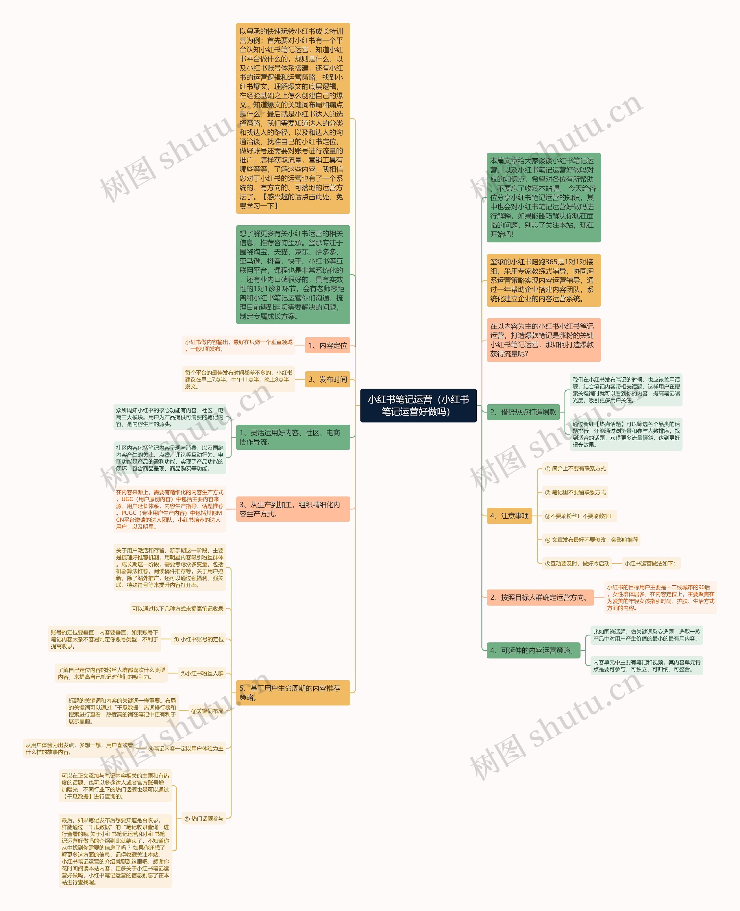 以玺承的快速玩转小红书成长特训营为例:首先要对小红书有一个平台认知小红书笔记运营,知道小红书平台做什么的,规则是什么,以及小红书账号体系搭建,还有小红书的运营逻辑和运营策略,找到小红书爆文,理解爆文的底层逻辑,在经验基础之上怎么创建自己的爆文,知道爆文的关键词布局和痛点是什么,最后就是小红书达人的选择策略,我们需要知道达人的分类和找达人的路径,以及和达人的沟通洽谈,找准自己的小红书定位,做好账号还需要对账号进行流量的推广,怎样获取流量,营销工具有哪些等等,了解这些内容,我相信您对于小红书的运营也有了一个系统的、有方向的、可落地的运营方法了。【感兴趣的话点击此处,免费学习一下】