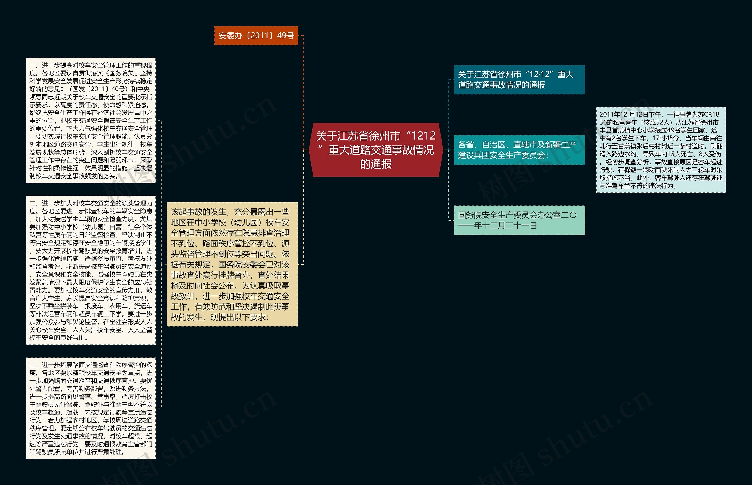 一、进一步提高对校车安全管理工作的重视程度。各地区要认真贯彻落实《国务院关于坚持科学发展安全发展促进安全生产形势持续稳定好转的意见》(国发〔2011〕40号)和中央领导同志近期关于校车交通安全的重要批示指示要求,以高度的责任感、使命感和紧迫感,始终把安全生产工作摆在经济社会发展重中之重的位置,把校车交通安全摆在安全生产工作的重要位置,下大力气强化校车交通安全管理。要切实履行校车交通安全管理职能,认真分析本地区道路交通安全、学生出行规律、校车发展现状等总体形势,深入剖析校车交通安全管理工作中存在的突出问题和薄弱环节,采取针对性和操作性强、效果明显的措施,坚决遏制校车交通安全事故频发的势头。