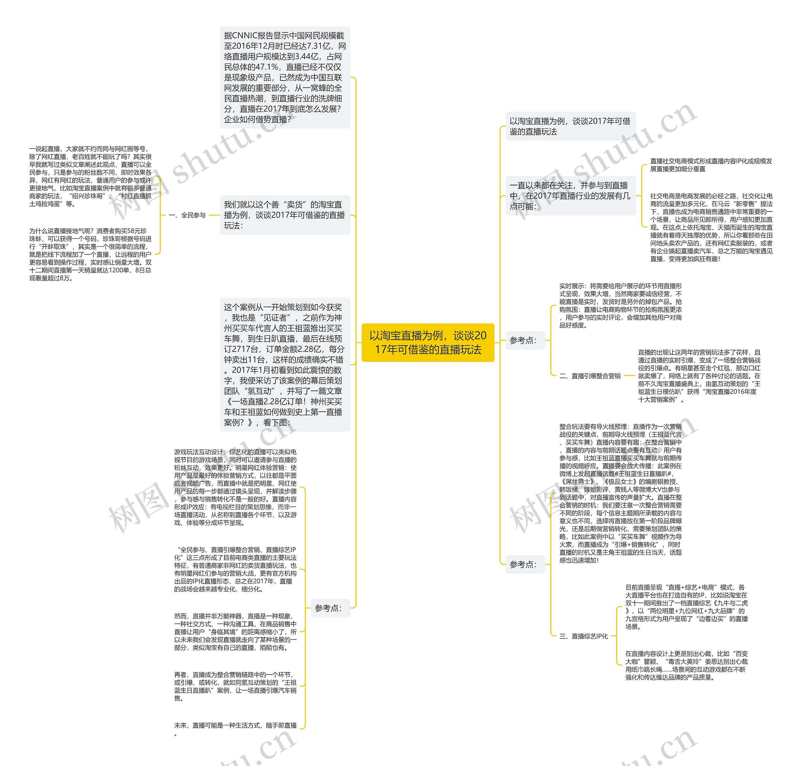 树图思维导图提供《以淘宝直播为例,谈谈2017年可借鉴的直播玩法》在线思维导图免费制作,点击“编辑”按钮,可对《以淘宝直播为例,谈谈2017年可借鉴的直播玩法》进行在线思维导图编辑,本思维导图属于思维导图模板主题,文件编号是:caac7a2f5b484a8974376842c1a0d0fe