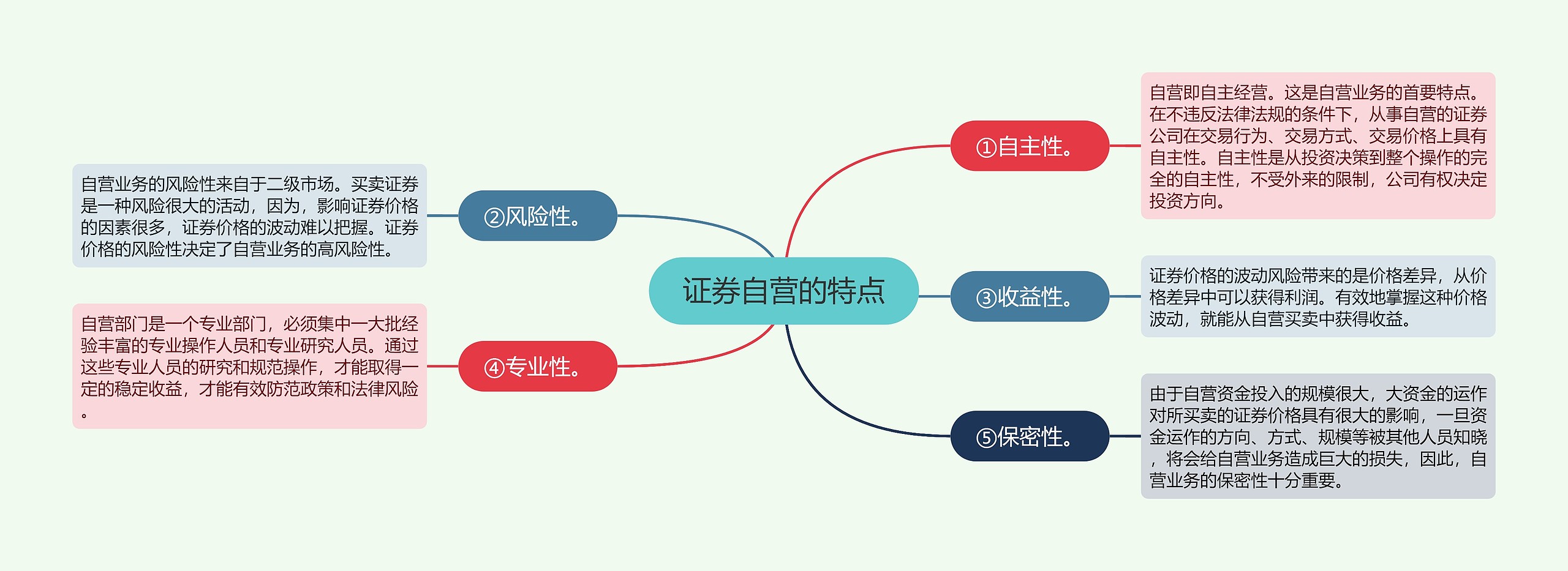 树图思维导图提供《证券自营的特点》在线思维导图免费制作,点击“编辑”按钮,可对《证券自营的特点》进行在线思维导图编辑,本思维导图属于思维导图模板主题,文件编号是:85cf6d3f792be68b3572f5f24426b08d