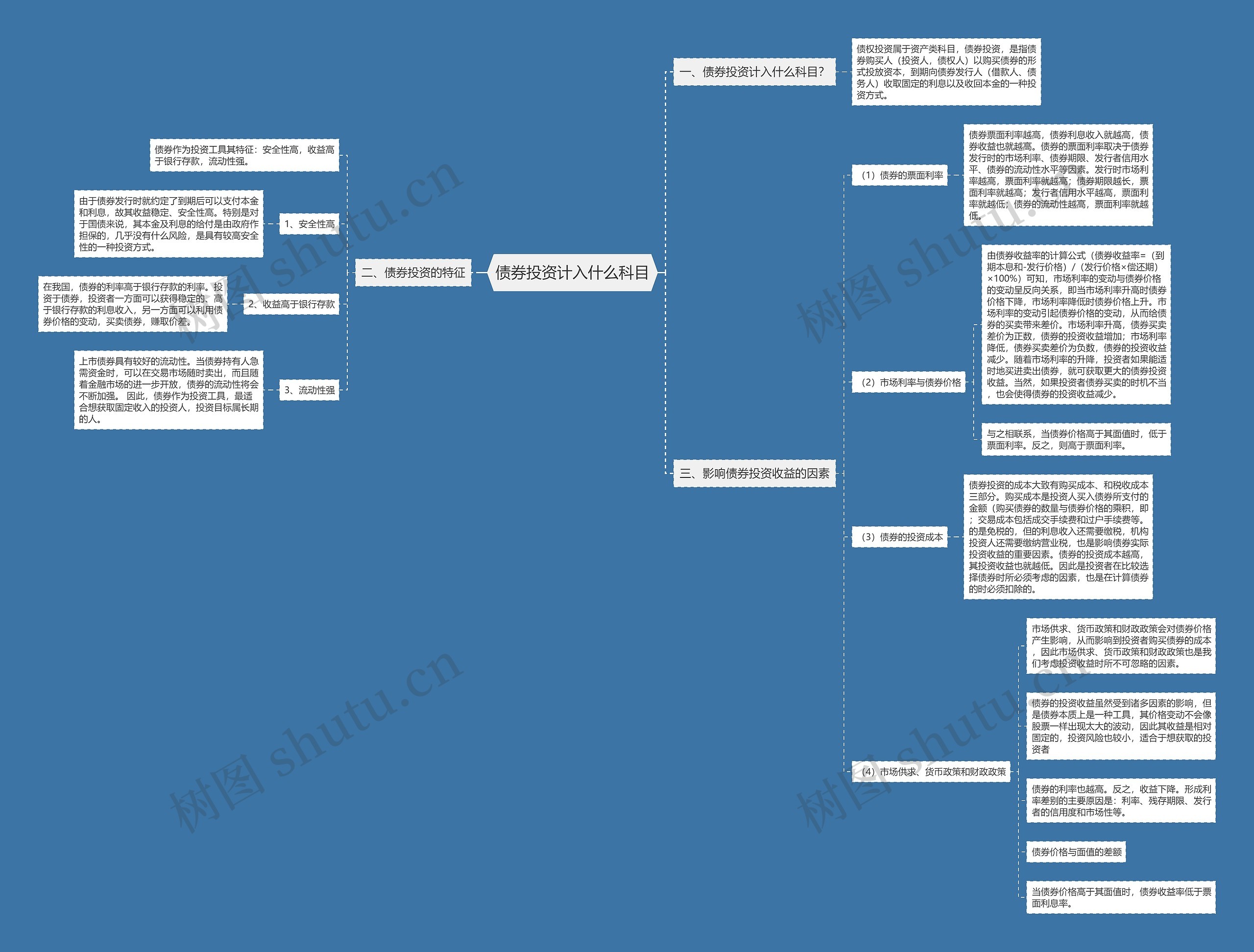 树图思维导图提供《债券投资计入什么科目》在线思维导图免费制作,点击“编辑”按钮,可对《债券投资计入什么科目》进行在线思维导图编辑,本思维导图属于思维导图模板主题,文件编号是:3e94c0e18a44c17b8039758e81ba2284