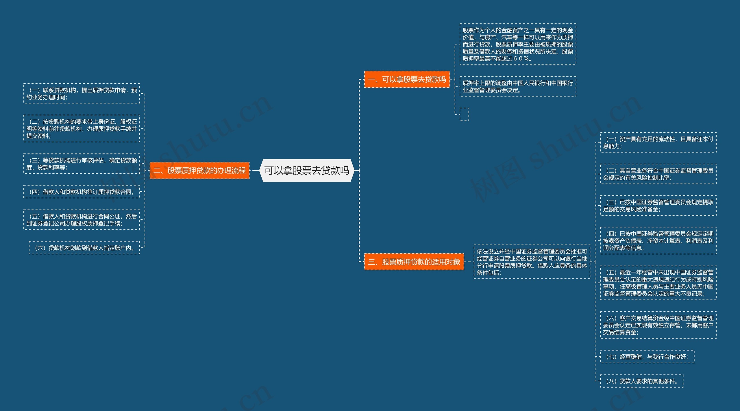 树图思维导图提供《可以拿股票去贷款吗》在线思维导图免费制作,点击“编辑”按钮,可对《可以拿股票去贷款吗》进行在线思维导图编辑,本思维导图属于思维导图模板主题,文件编号是:97edb2012412c1505615c7910a447678