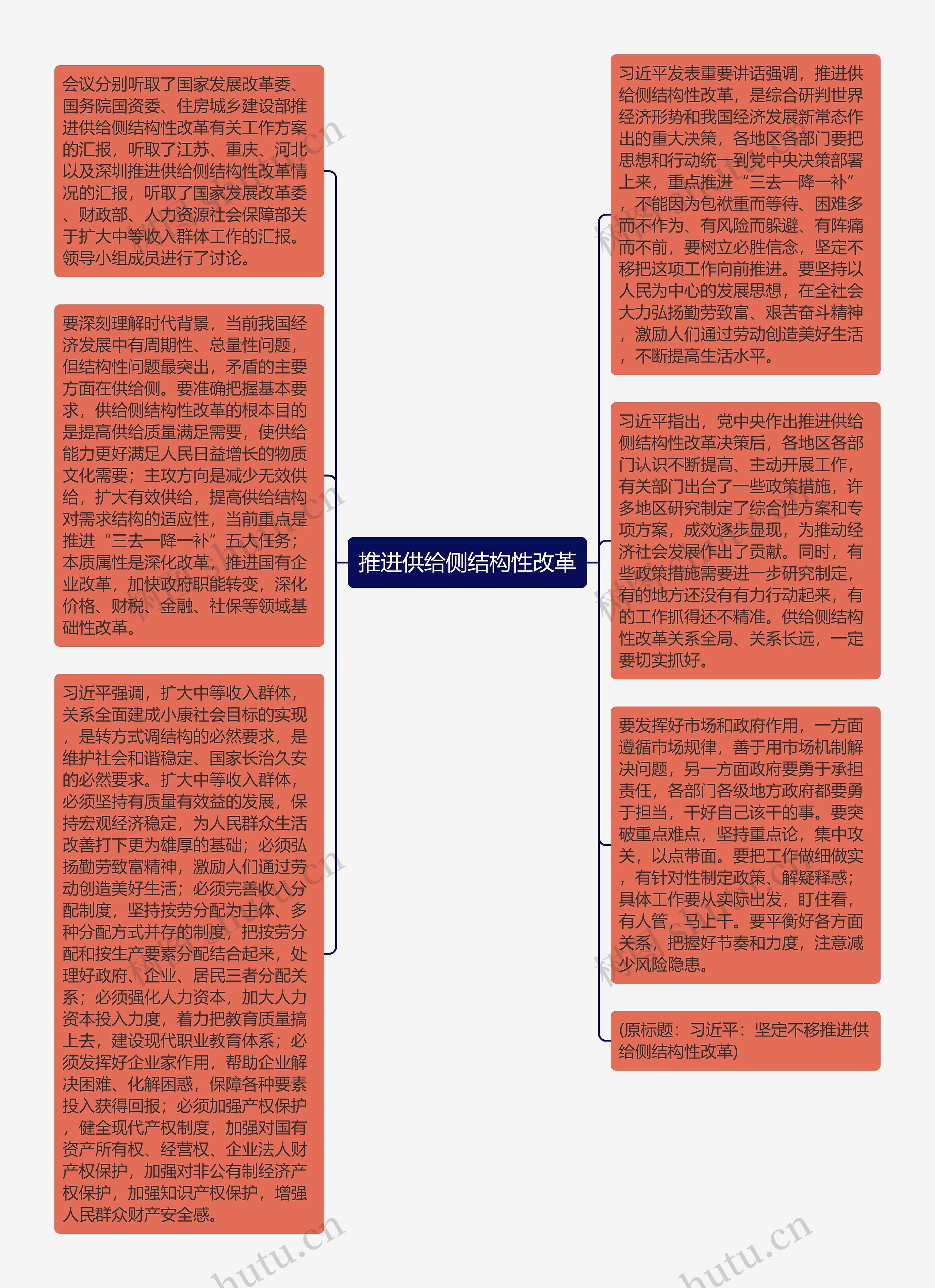 习近平指出,党中央作出推进供给侧结构性改革决策后,各地区各部门认识不断提高、主动开展工作,有关部门出台了一些政策措施,许多地区研究制定了综合性方案和专项方案,成效逐步显现,为推动经济社会发展作出了贡献。同时,有些政策措施需要进一步研究制定,有的地方还没有有力行动起来,有的工作抓得还不精准。供给侧结构性改革关系全局、关系长远,一定要切实抓好。